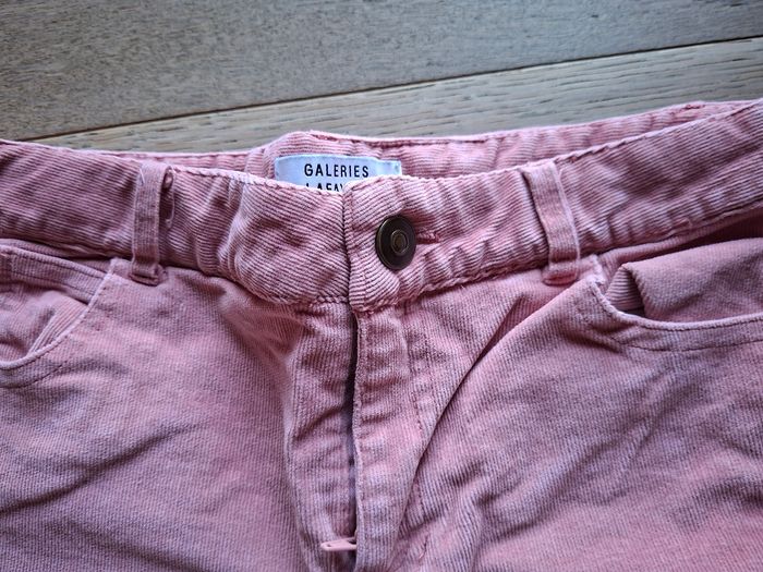 Jean skinny en velours fin milleraies rose Galeries Lafayette. Taille 10 ans Matière 98% coton, 2% polyester. Liens de serrage à la taille.