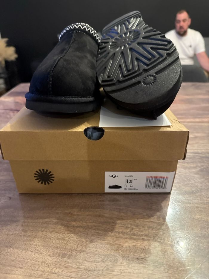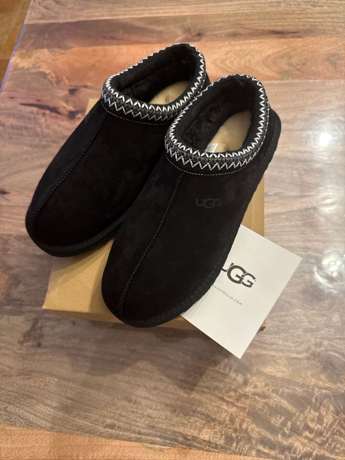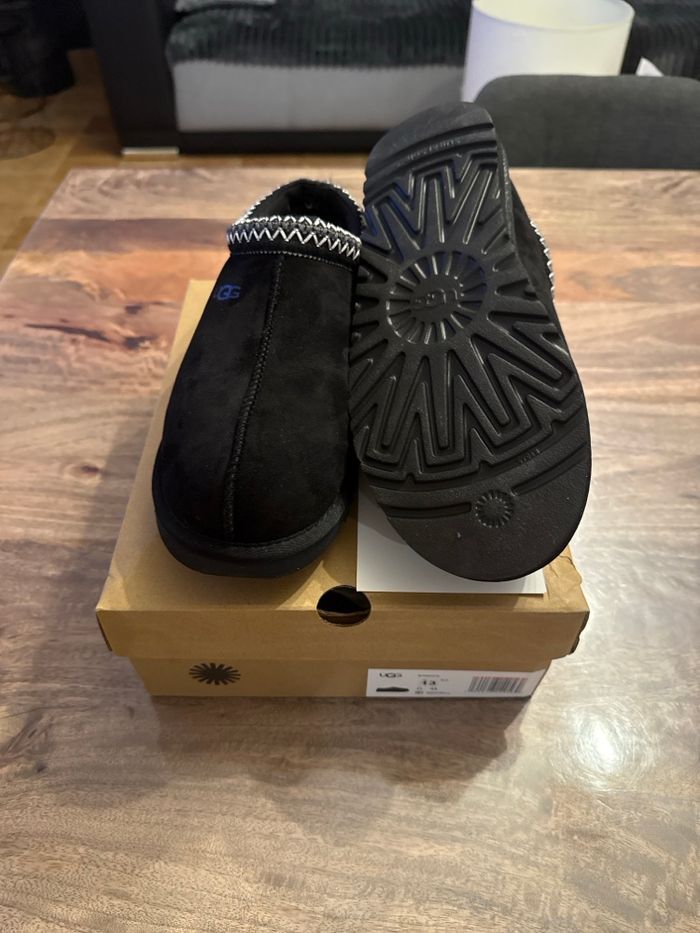 Chaussons UGG Tasman en noir, en excellent état avec boîte d'origine. Semelle et intérieur en parfait état. Elle son neuve jamais porté ⭐️ État : 10/10 🎲 Taille : 44 🎨 Couleur : Noir 📦 Livraison rapide et soignée.