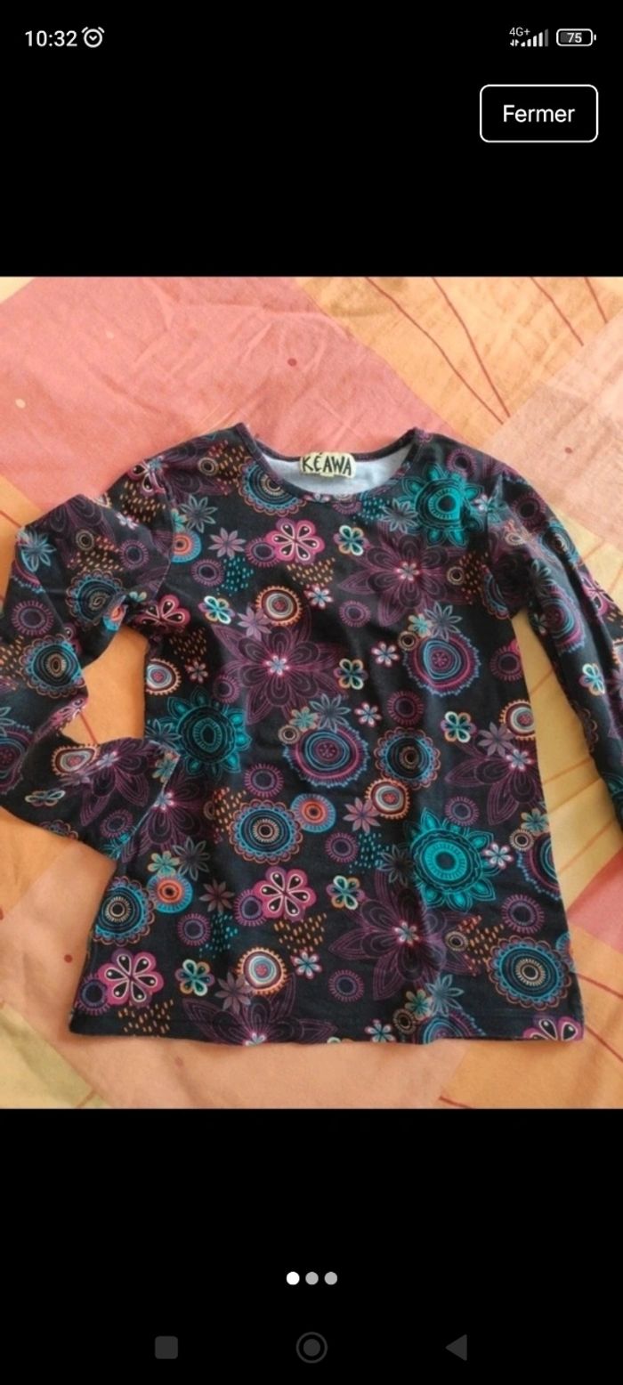 Vends un t-shirt manches longues 8 ans. Peu porté. La couleur du fond un peu passée est comme cela d'origine.