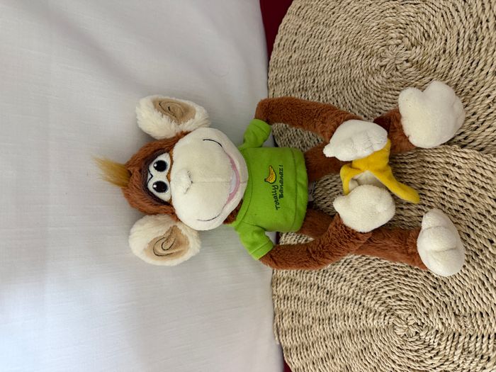 Doudou Peluche Singe sonore Hurleur Marron Tee-shirt  Banane Gipsy - photo numéro 7