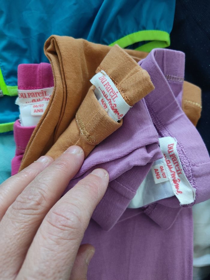 Lot de 3 leggings du pareil au même. Taille 6/7 ans (longueur 65 cm)en très bon état. Et un pantalon de danse noir taille haute en 7/8 ans (longueur 65 et 72 avec la ceinture et son cordon de serrage), acheté chez Decathlon, en très bon état.
