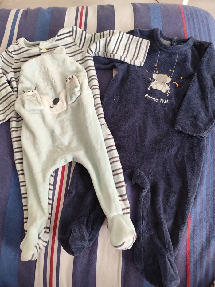 4 bodies et 2 pyjamas de la marque Kiabi. Taille : 9 mois. Le pyjama avec l'éléphant est un peu abîmé au niveau du dessin. Sinon tout est en bon état. Aucune tâche 🤗
