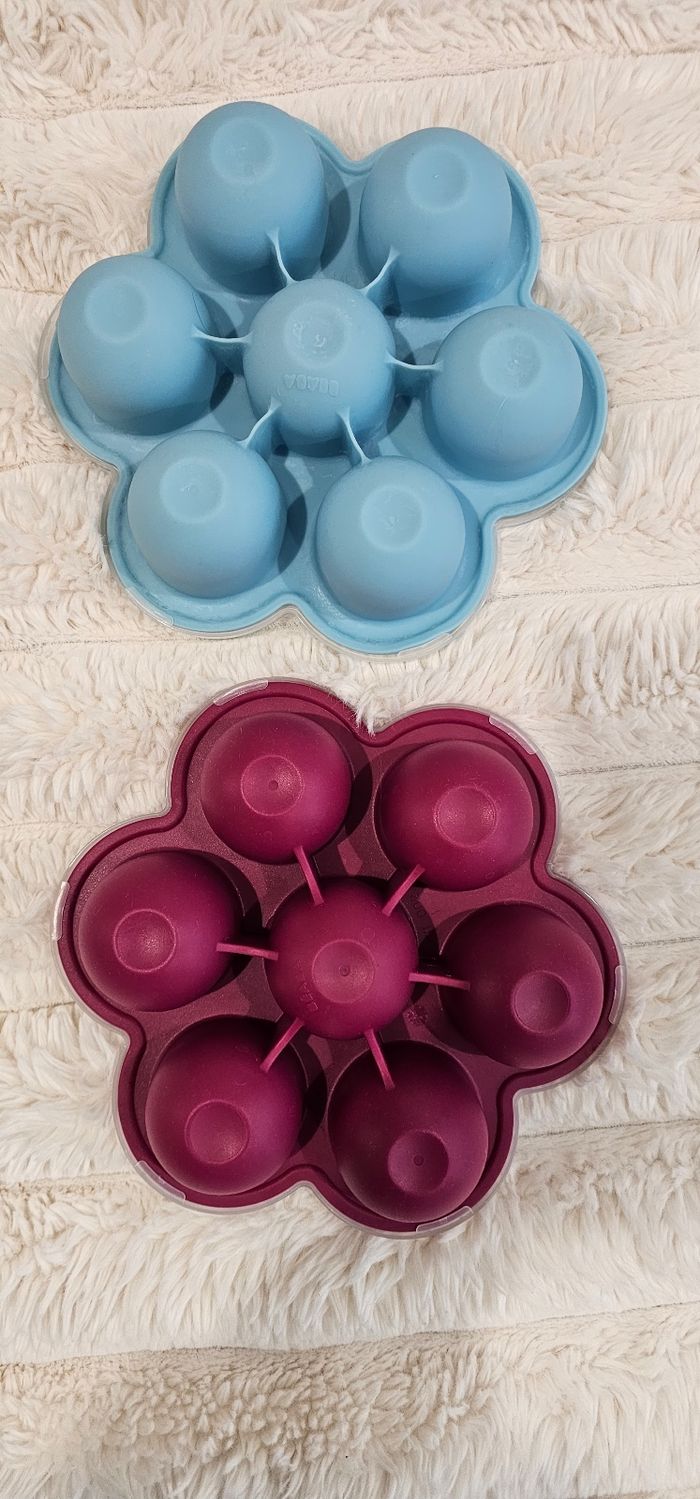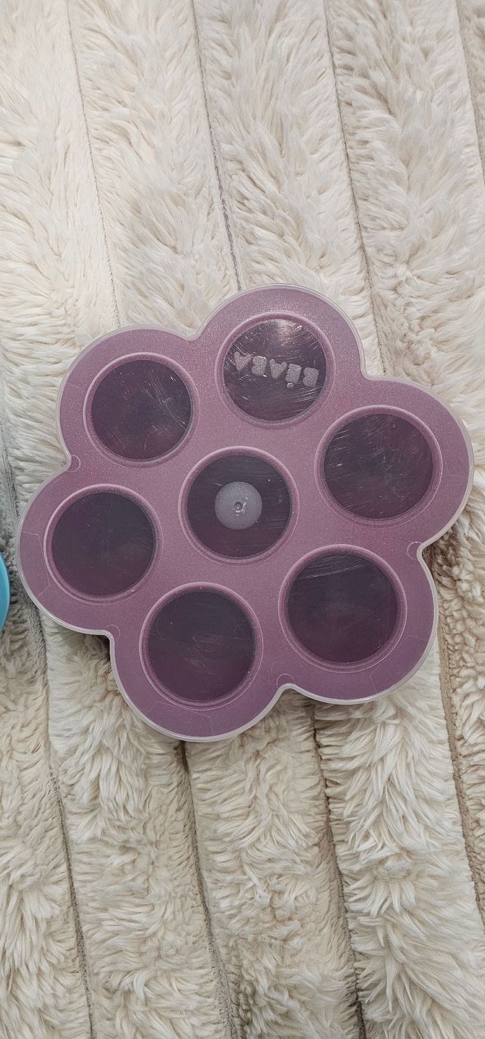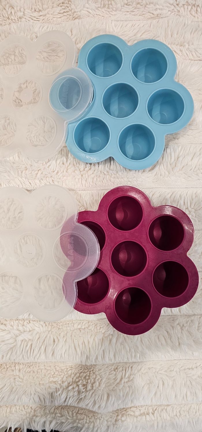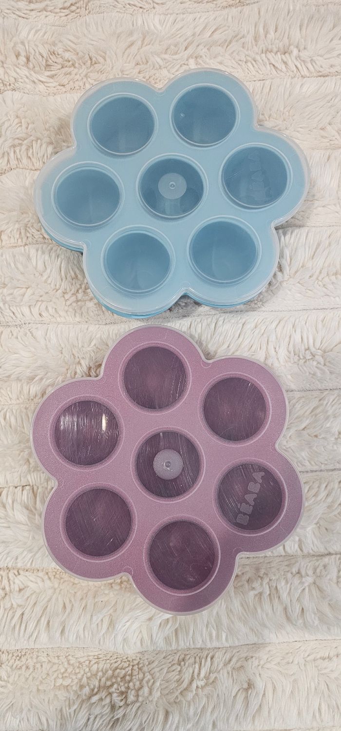 Lot de 2 fleurs 🌸 multiportions Béaba 60ml. Couleur bleue & prune. Tres bon etat.