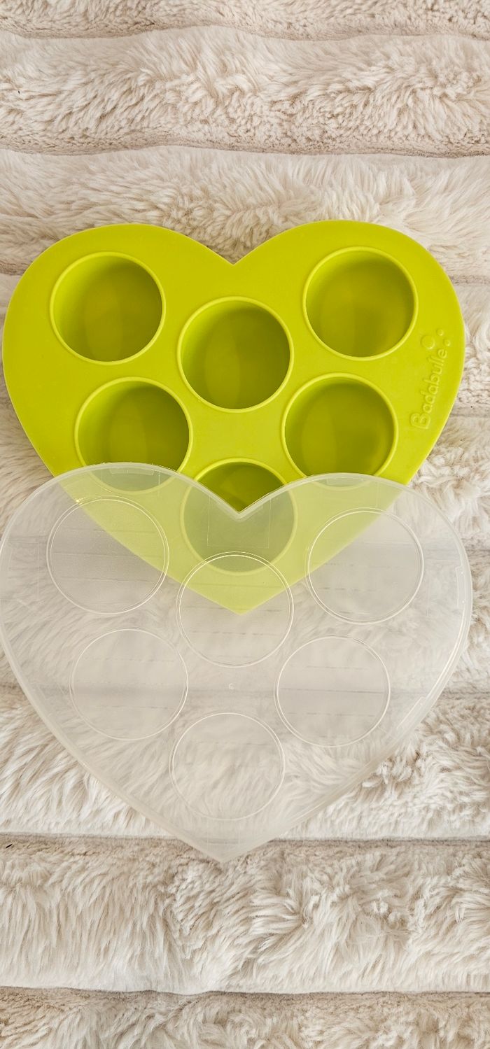 Moule multiportions en forme de coeur 🩷 vert anis Badabulle. Portion 60ml. Tres bon etat.