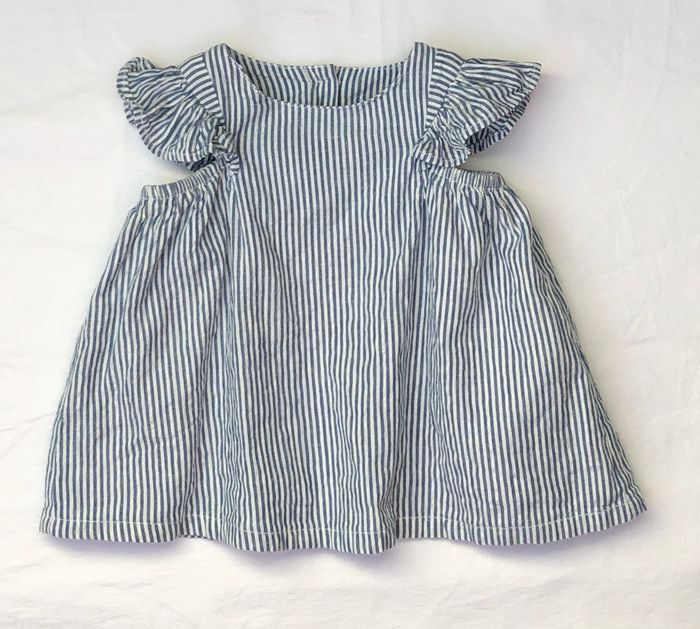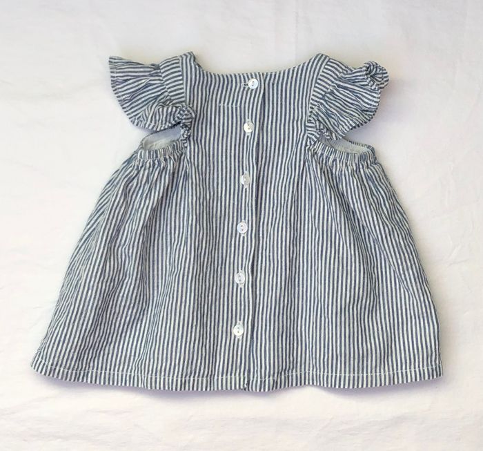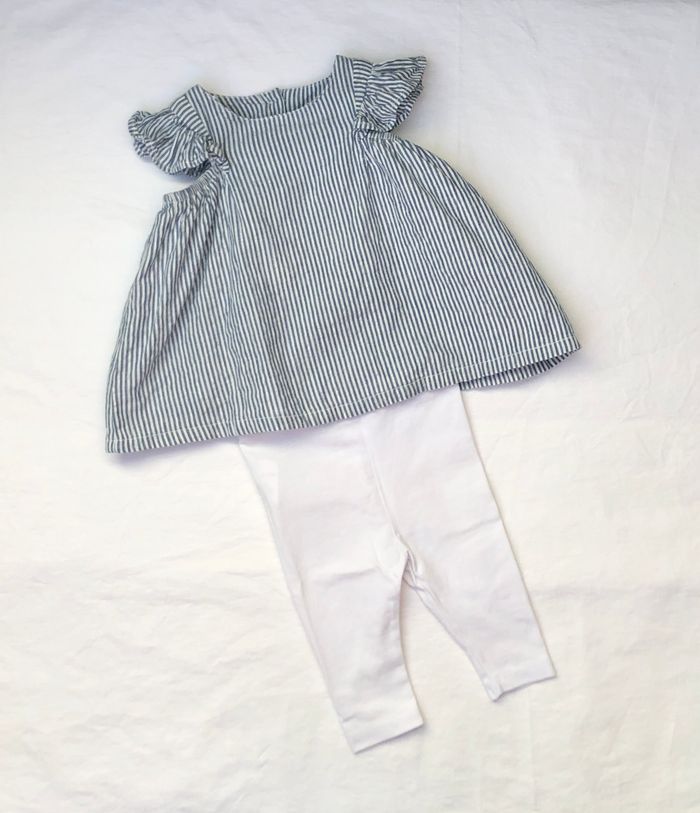 Très joli ensemble 2 pièces, confortable pour l’été, Taille 3 mois / 59/ 60 cm. -Blouse sans manches U tout petits, à rayures fines crème, bleues et argentées. 100% coton Volants sur les épaules. Ouverture par boutons tout le long du dos. -Legging Z, blanc uni, En coton élasthanne. Lot en excellent état, sans tache ni trou. 🌸 Vous aimez cet article ? N’oubliez pas de visiter le reste de mon dressing en filtrant les tailles.