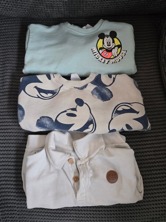 #24moisgarçon_tatianaalena Lot de 3 sweats Marque : Zara / Kiabi Taille 📏 : 2 ans ( 92 cm ) / 36 mois ( taille petit ) État 🏷️: Bon etat ( blanc et bleu petite tache tete de mickey petit trou ) Couleur 🎨 : Multicolore