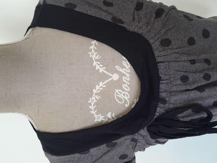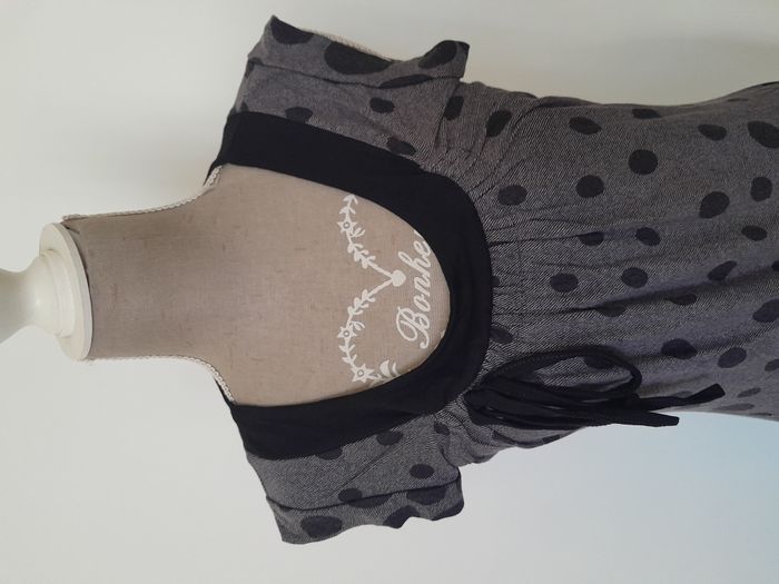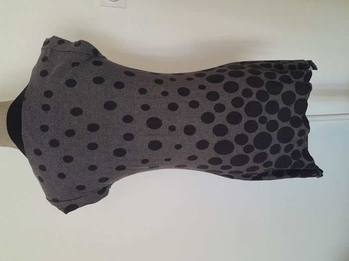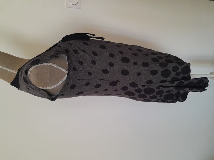 Tunique, asymétrique, à poids, sans manche, fronce et nœud sur le col Longueur : 68cm Aiss / Aiss : 44cm Matière : 94 % Viscose, 6 % Elasthanne Marque : Cache Cache