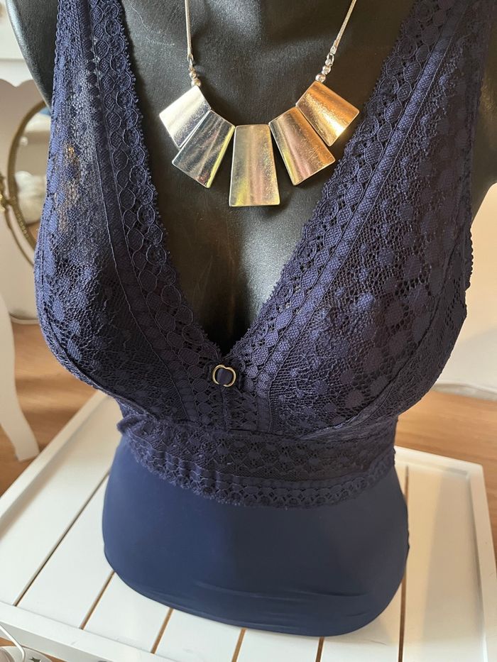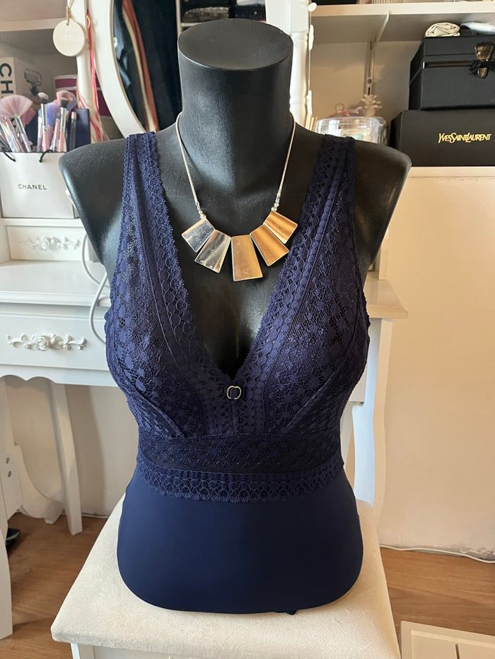 Body dentelle bleu nuit Tissaia T34/36 TBE 🌑 - photo numéro 4
