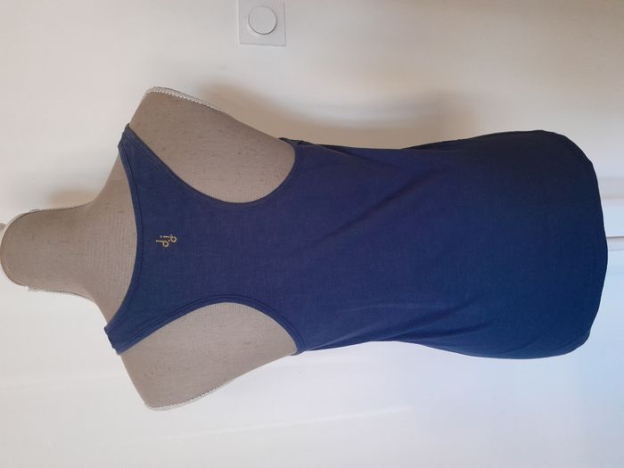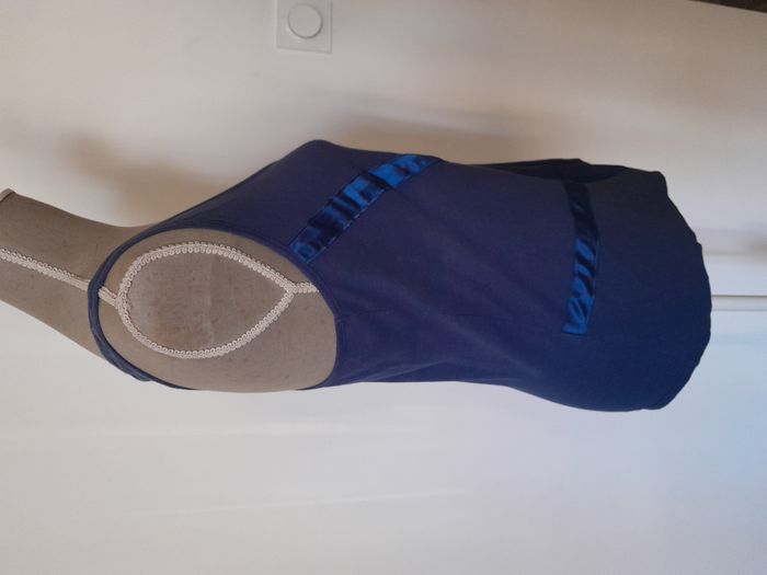 Débardeur, dos nageur, avec empiècement en satin sur le devant Longueur : 54cm Aiss / Aiss : 43cm Matière : 70 % Coton, 30 % Polyester Marque : Daisy Jee