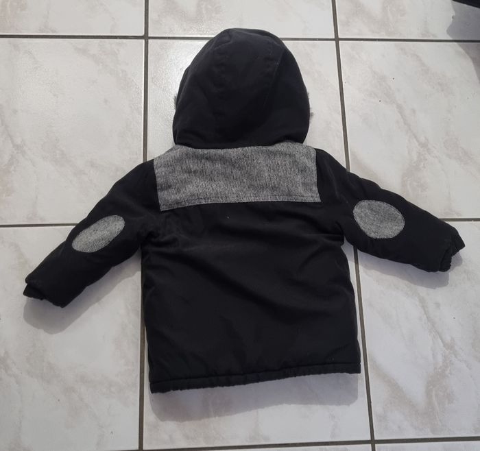 manteau parka noir avec capuche fourrure gemo taille 18 mois - photo numéro 2