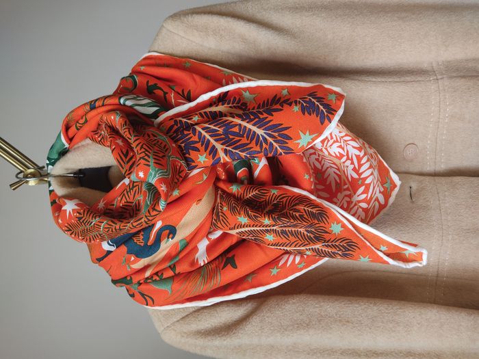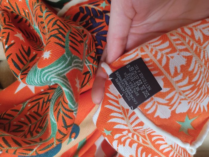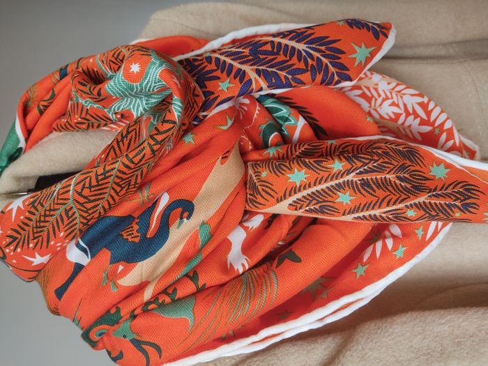Grand châle 130cm Cachemire et soie Orange Neuf avec emballage