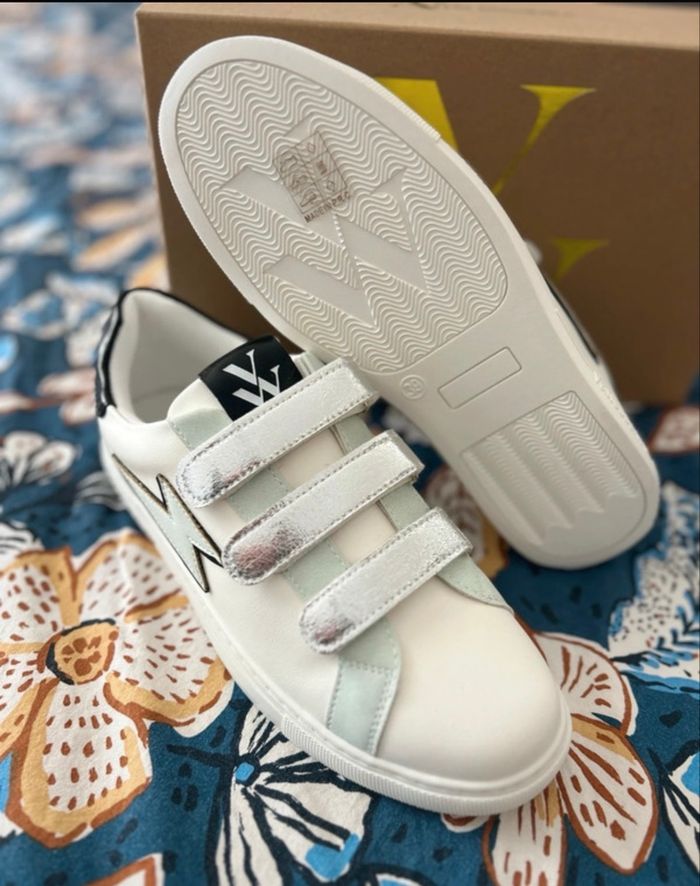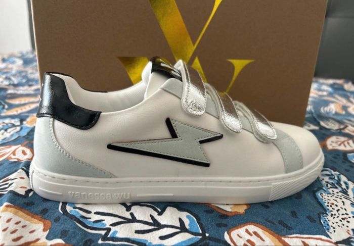 Basket Vanessa, Jo, taille 39 couleur blanche bleu et argentée et noir neuf dans la boîte jamais porté