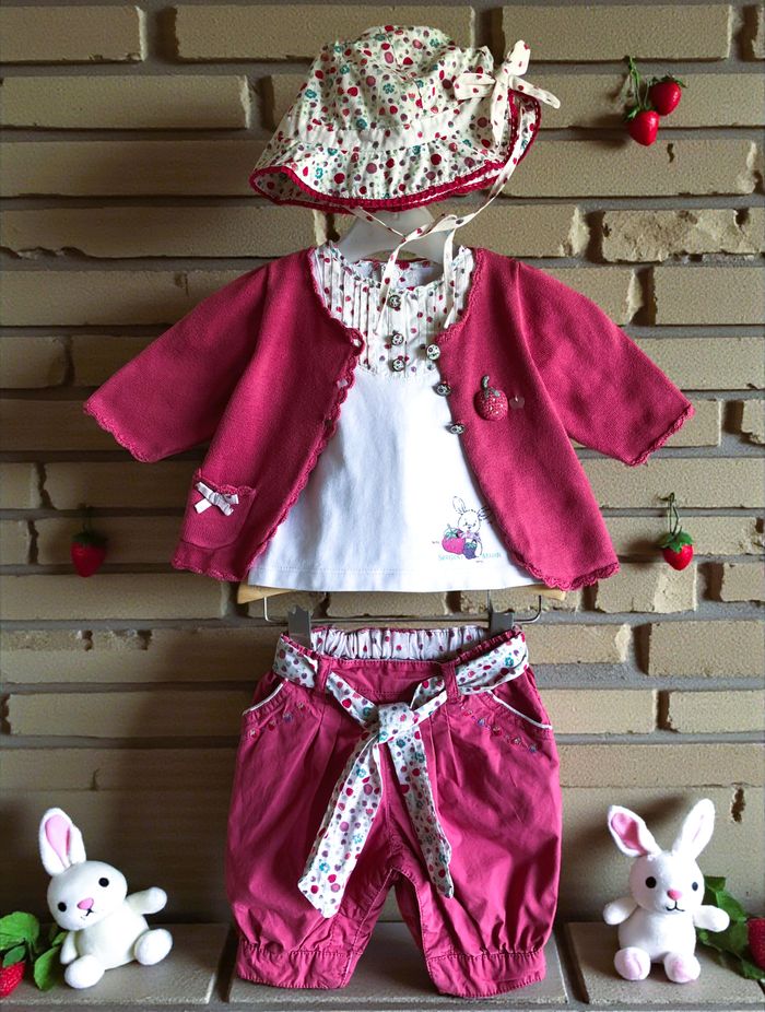 MARQUE : SERGENT MAJOR… ÉTAT : EXCELLENT !!! TAILLE : 3 MOIS OU STATURE 60 CM COLORIS : BLANC + VIEUX ROSE + DIVERS COMPOSITION : 100% COTON MOTIF : FRAISES + FLEURS + LAPIN PARTICULARITÉS : - Boutons Bijoux - Fraise Relief sur Gilet - Broderies Fraises sur les Poches du Bas - Liseré Guipure & Petit Nœud sur le Chapeau - Contraste de Teintes Lumineuses