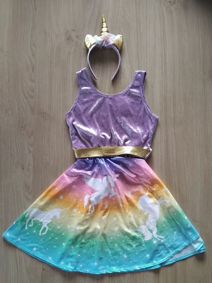 Déguisement Princesse Robe Licorne + Ceinture + Serre-tête 9 - 10 ans Fille Carnaval 🦄 - photo numéro 1