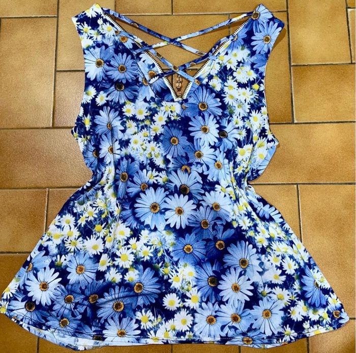 Haut motif fleurie couleur bleu et jaune TU - photo numéro 1