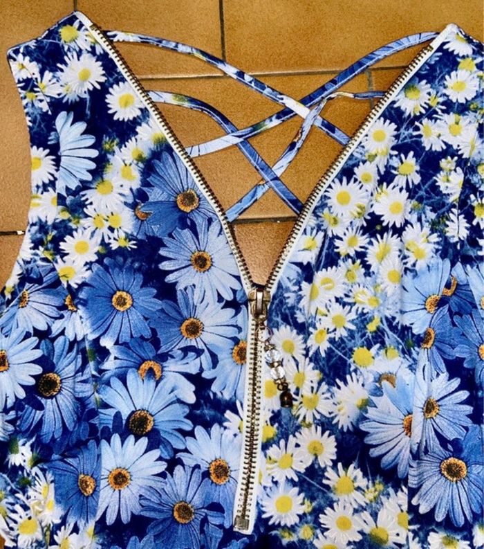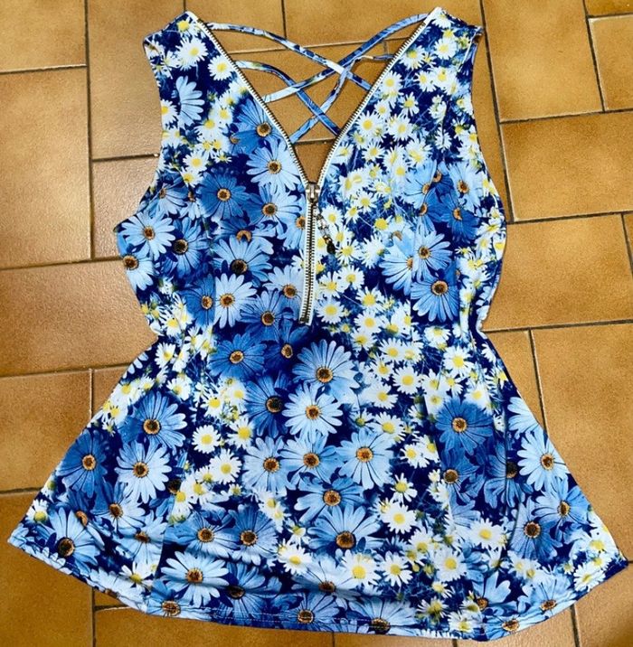 Haut motif fleurie couleur bleu et jaune TU - photo numéro 6