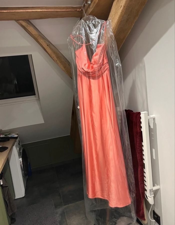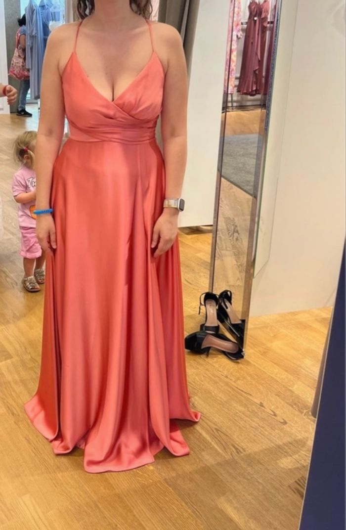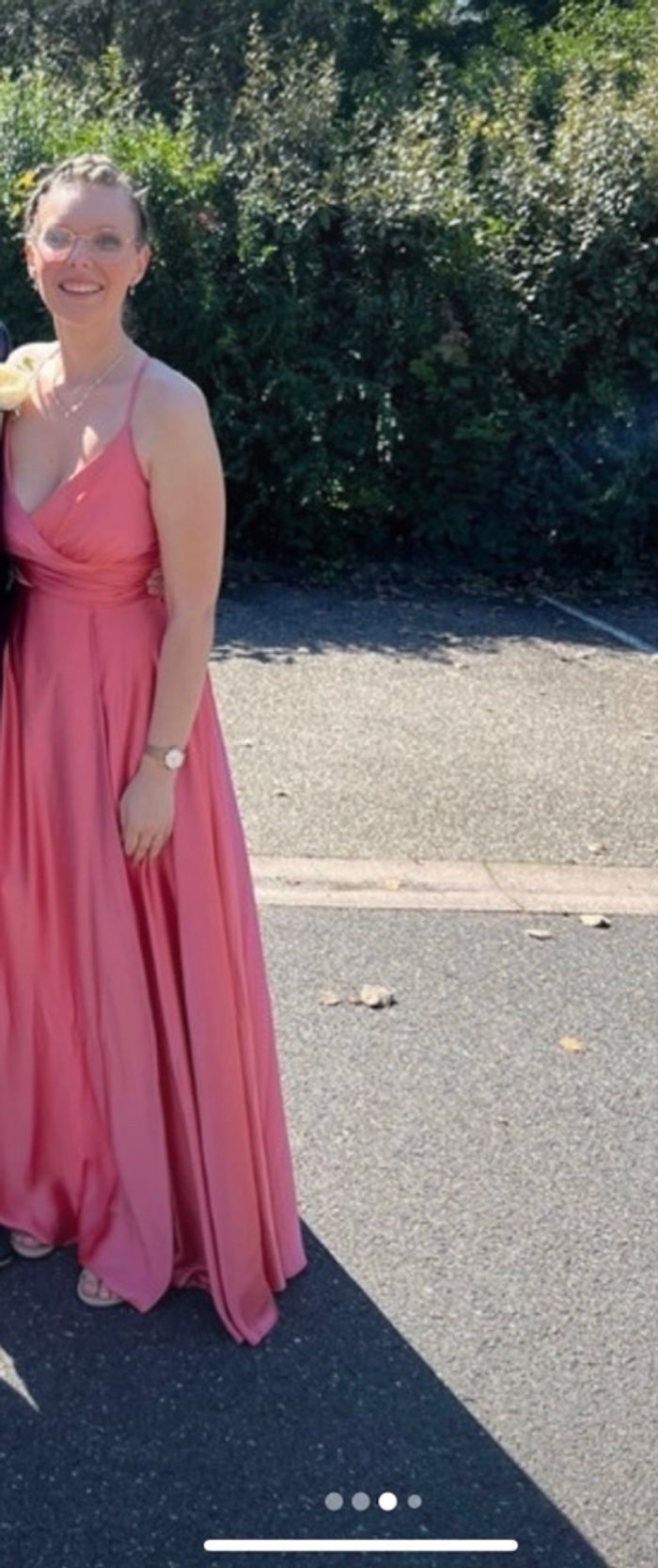 Robe mis 2 fois pour un mariage. Lavé au pressing à chaque fois. Sort du pressing Taille 38. Massage dans le dos qu’on peut serrer selon la convenance. Fermeture éclaire également dans le dos Très légère trace d’usure en bas mais ne se voit pas quand on la porte. Quelques petits trais tiré qui ne se voit pas porté non plus