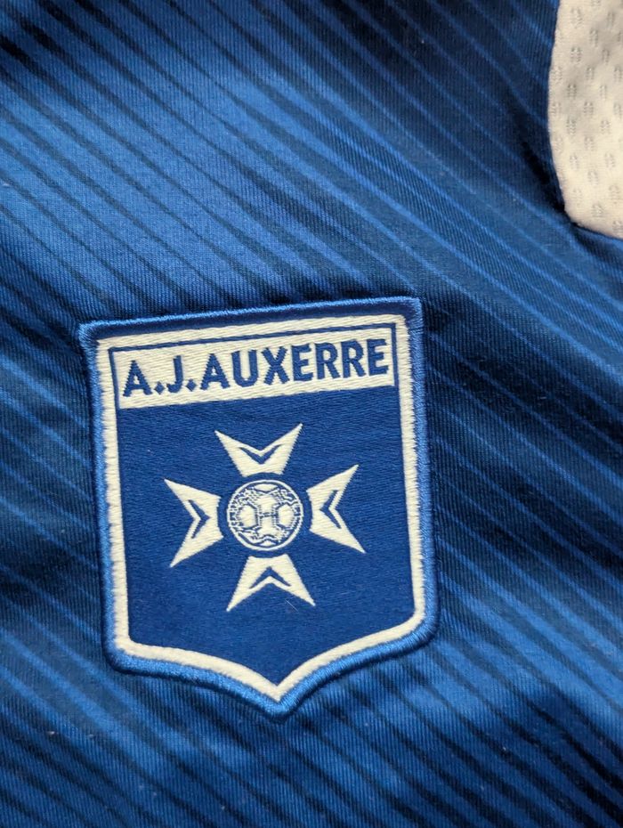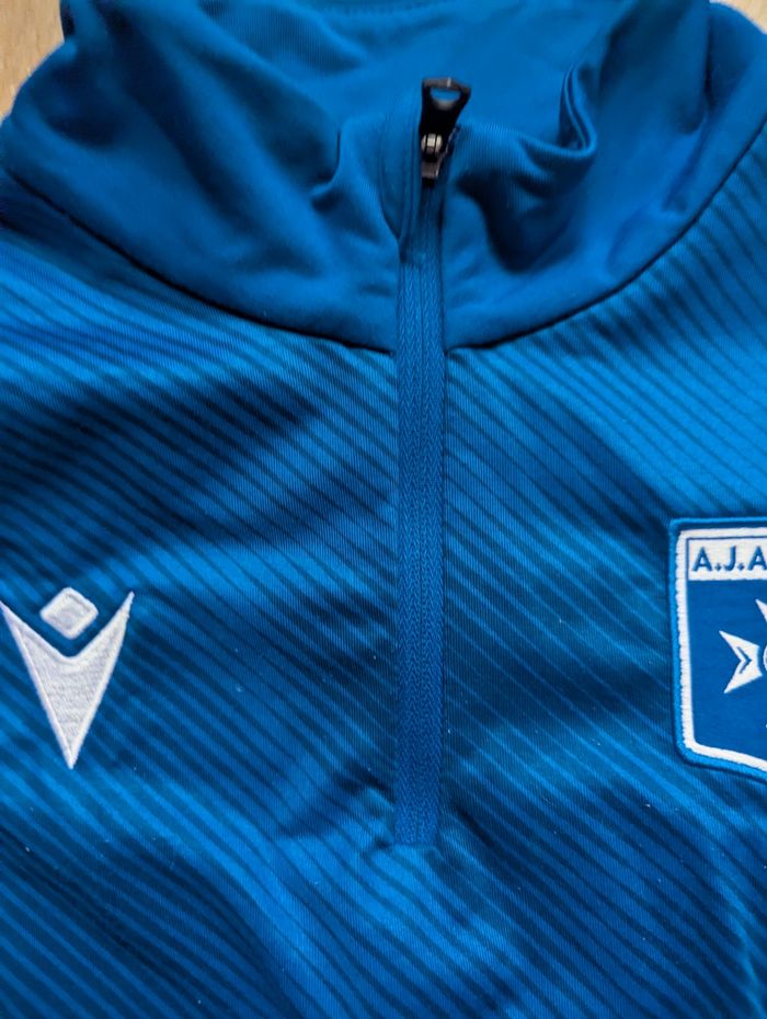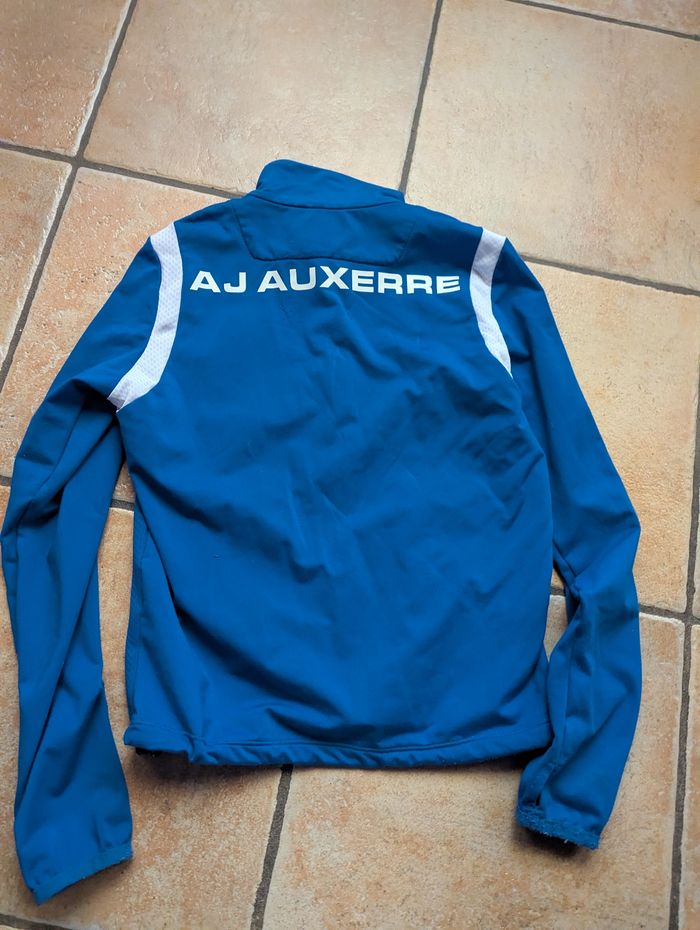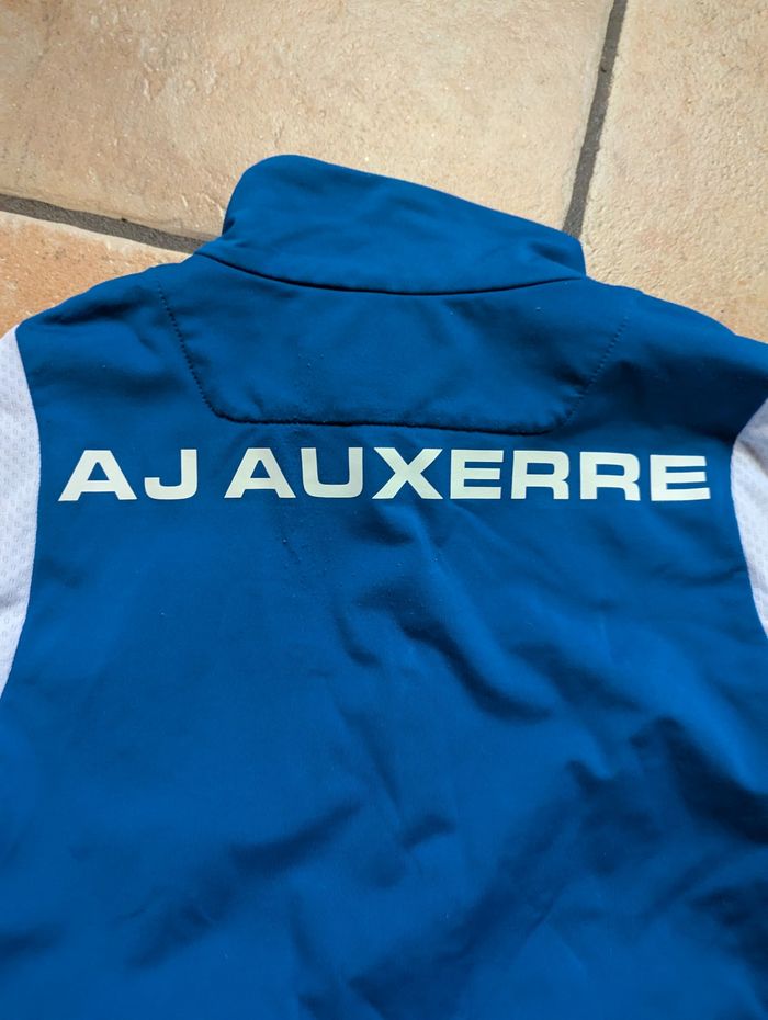 T-shirt AUXERRE manches longues Se ferme devant (niveau poitrine) par fermeture éclair. A vendre rapidement ... Avent départ pour déchetterie. Poignet élastiqués. (Trace de bouloches) Écusson AUXERRE sur le devant. Taille : 3 XS (Correspond à un 6 ans) Couleur : bleu et blanc Marque : MACRON État : très bon état