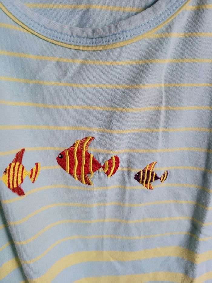 Taille 42 Turquoise et jaune vert à motifs Bon état Aisselle à aisselle 52 cm Haut en bas 80 cm
