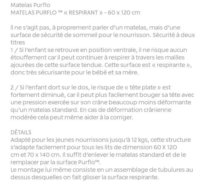 Matelas respirant PURFLO déhoussable entièrement lavable et transportable très bon état Avec notice Voir description dans les photos