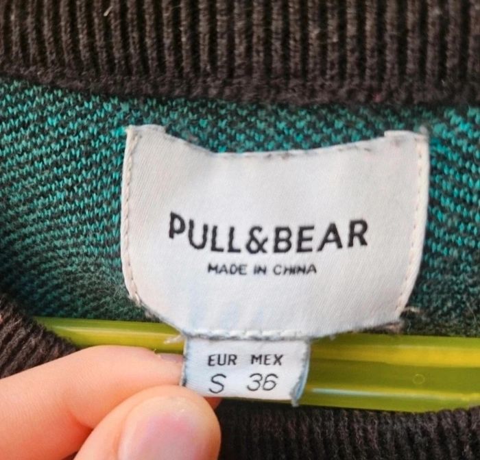 Pull maille noir et bleu imprimé Pull&Bear Taille s Très bon état Aucun defaut Prix négociable Remise en main propre possible