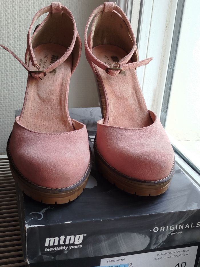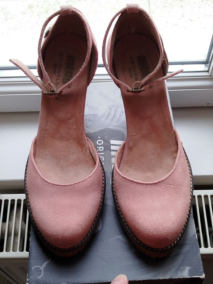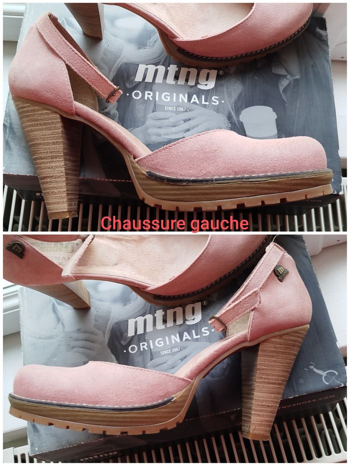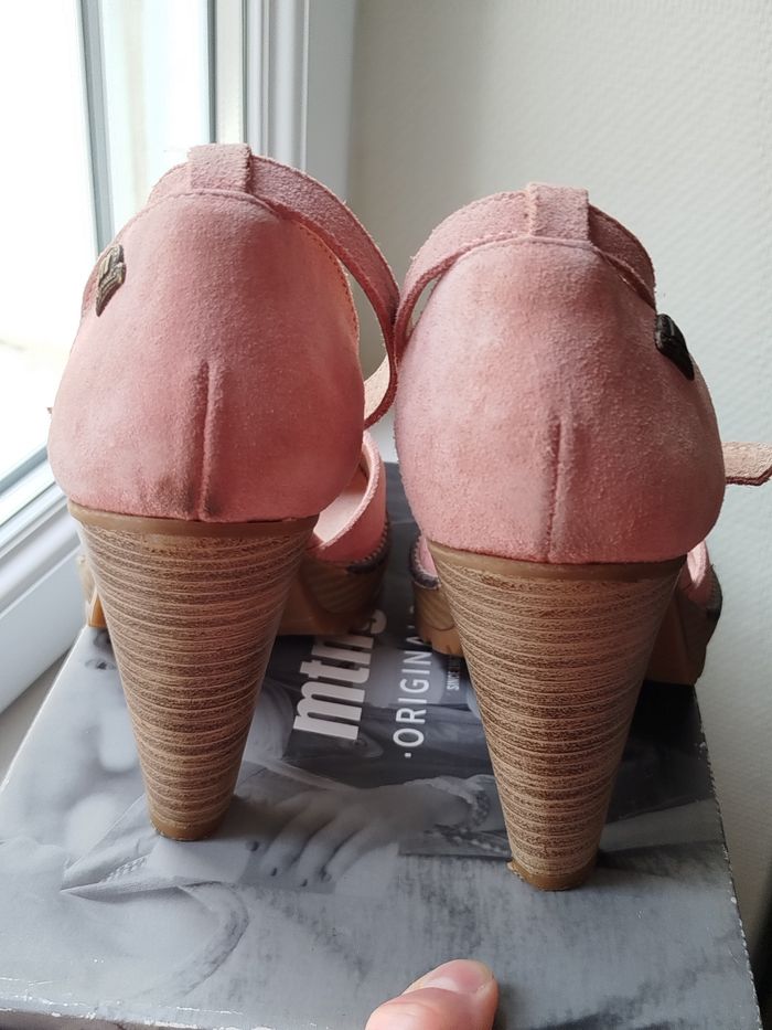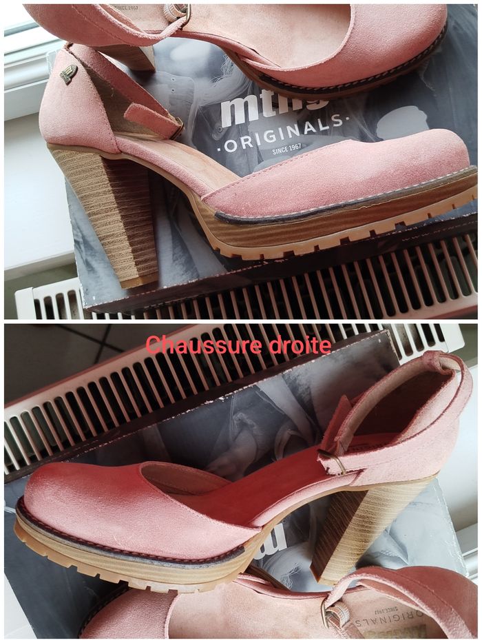 Paire de chaussures à talons rose de la marque Mustang. En très bon état. 3 marques d'usure (voir dernière photo) Envoi dans sa boîte d'origine. Prix négociable, dans la limite du raisonnable 🙂