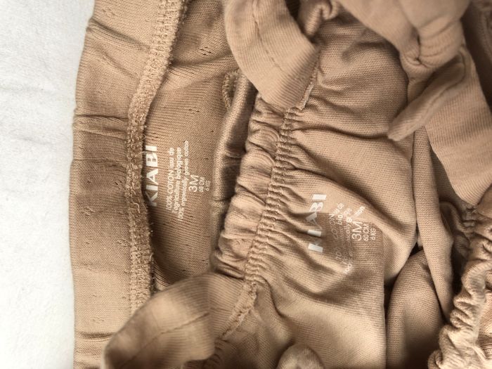Ensemble assorti 3 pièces Kiabi, Taille 3 mois/ 60 cm, En coton, Confortable et mignon, parfait pour l’été. En jersey et maille ajourée : pointelle, de couleur beige foncé -Top à bretelles avec des nœuds et un volant. -Bloomer avec des volants à l’avant et à l’arrière. -Bandeau avec un noeud. Lot neuf, lavé mais jamais porté. 🌸 Vous aimez cet article ? N’oubliez pas de visiter le reste de mon dressing en filtrant les tailles.