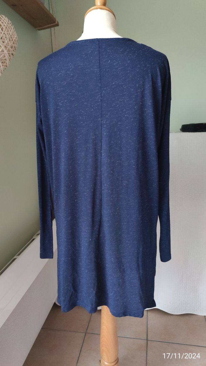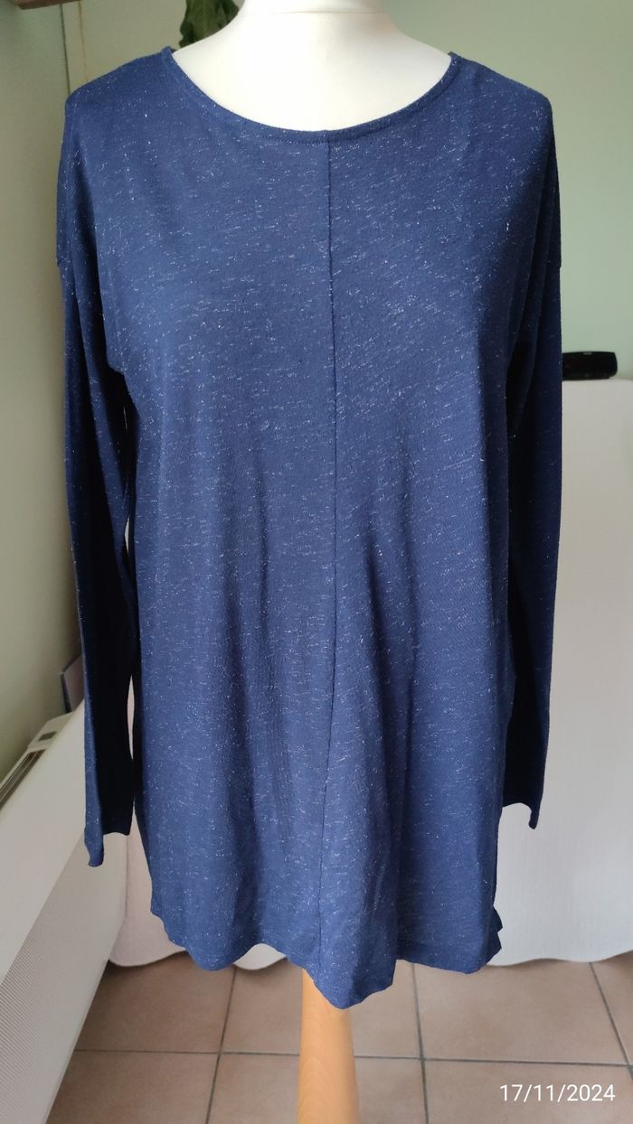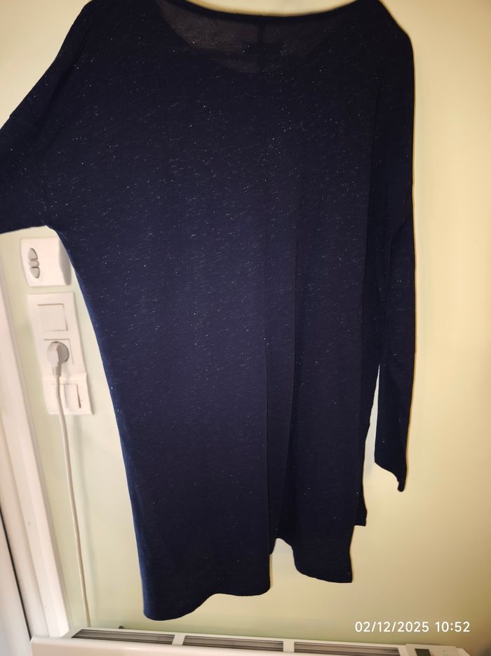 🧥 Tunique manches longues 🎨 Bleu marine avec fils brillants argenté 🌿 Bon état - ni trous ni tâches 📏Taille 38/M 📦 Envoi soigné & rapide