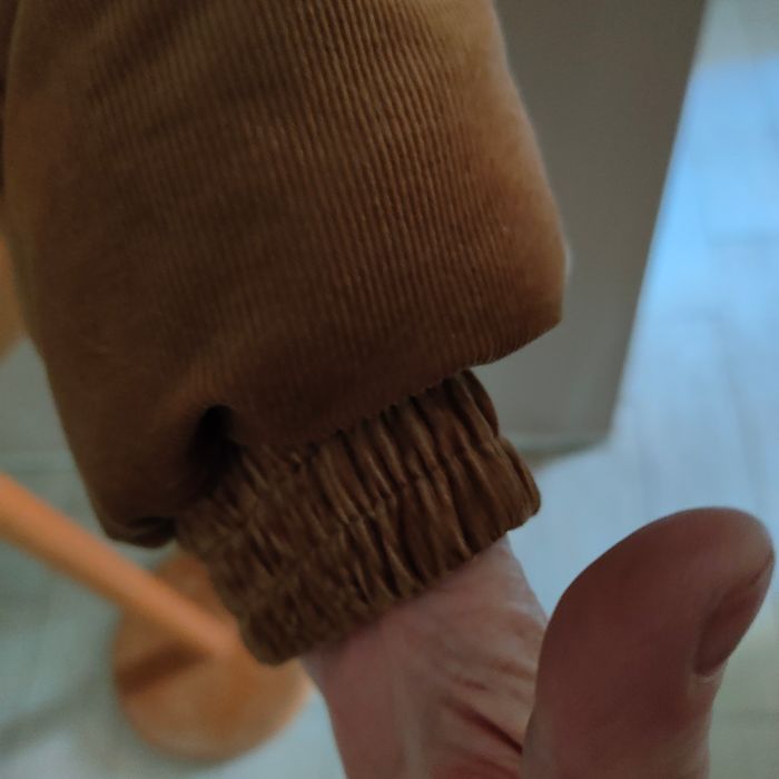Blouson Carhartt pour homme, taille S, en velours marron clair, matière à la fois élégante et résistante. Le sigle Carhartt brodé sur la poitrine apporte une touche authentique et emblématique de la marque. Fermeture complète zippée avec boutons-pression, permettant de se fermer jusqu’en haut pour une meilleure protection contre le froid. Le bas des manches et le bas du blouson sont élastiqués, assurant un bon maintien et un confort optimal au quotidien. Légère décoloration (voir photo n° 7) Dimensions : Largeur d'épaules : 46 cm Aisselle à aisselle : 54 cm Longueur totale : 88 cm