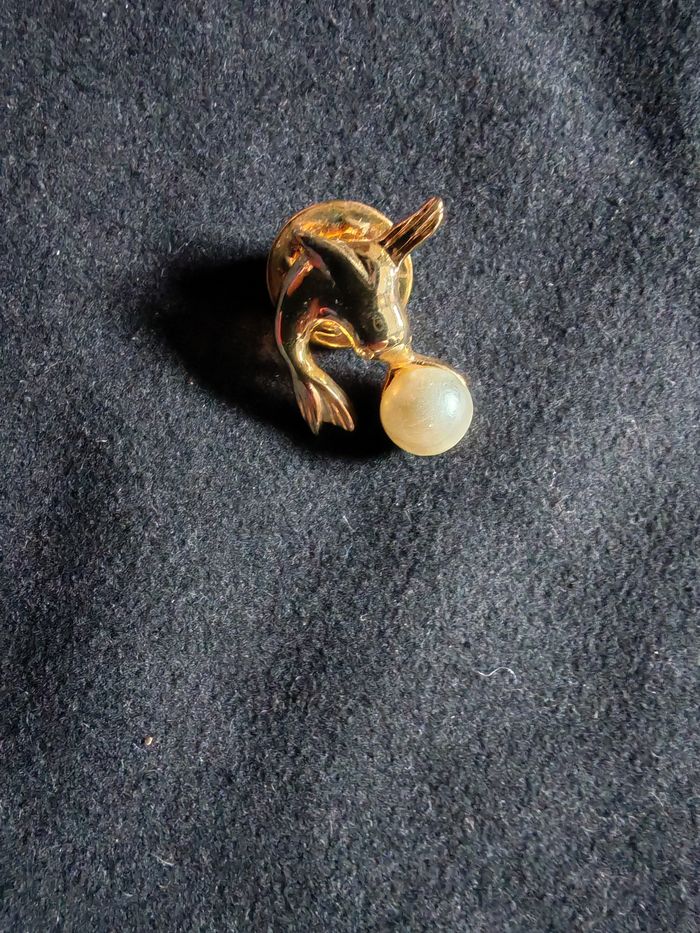Pin's otarie en métal doré avec perle, en très bon état, comme neuf. Dimensions : Taille : 2 cm Poids : 2g