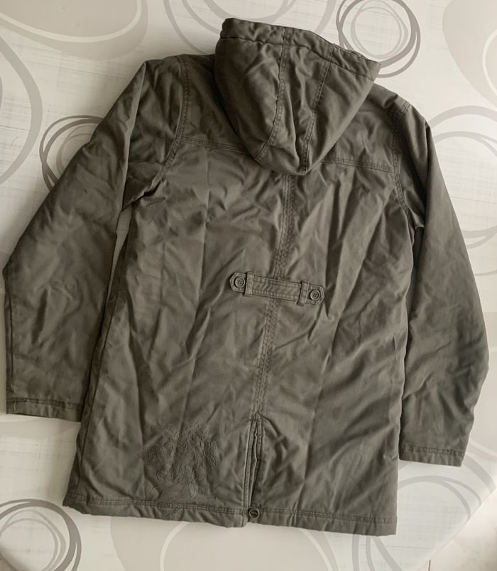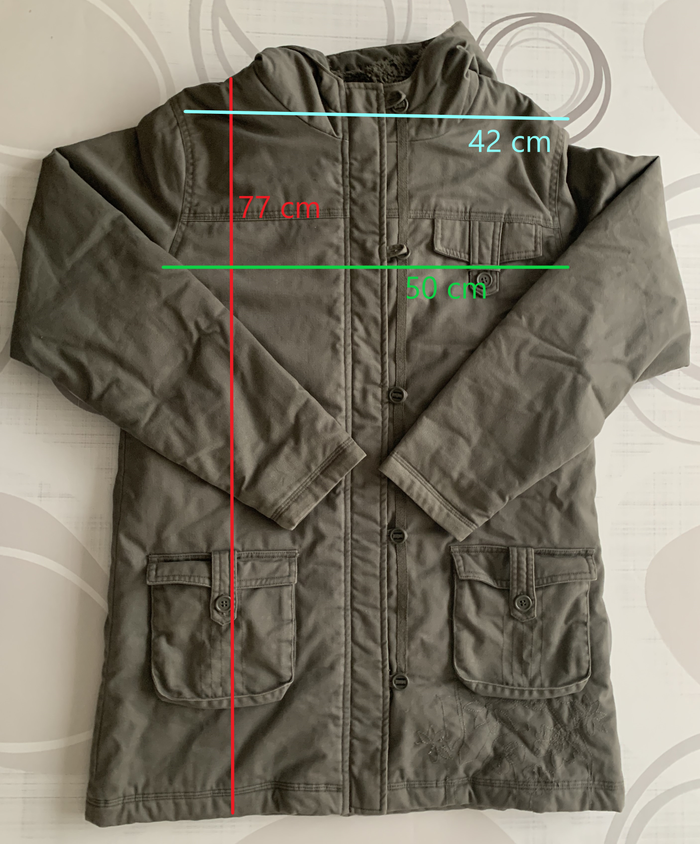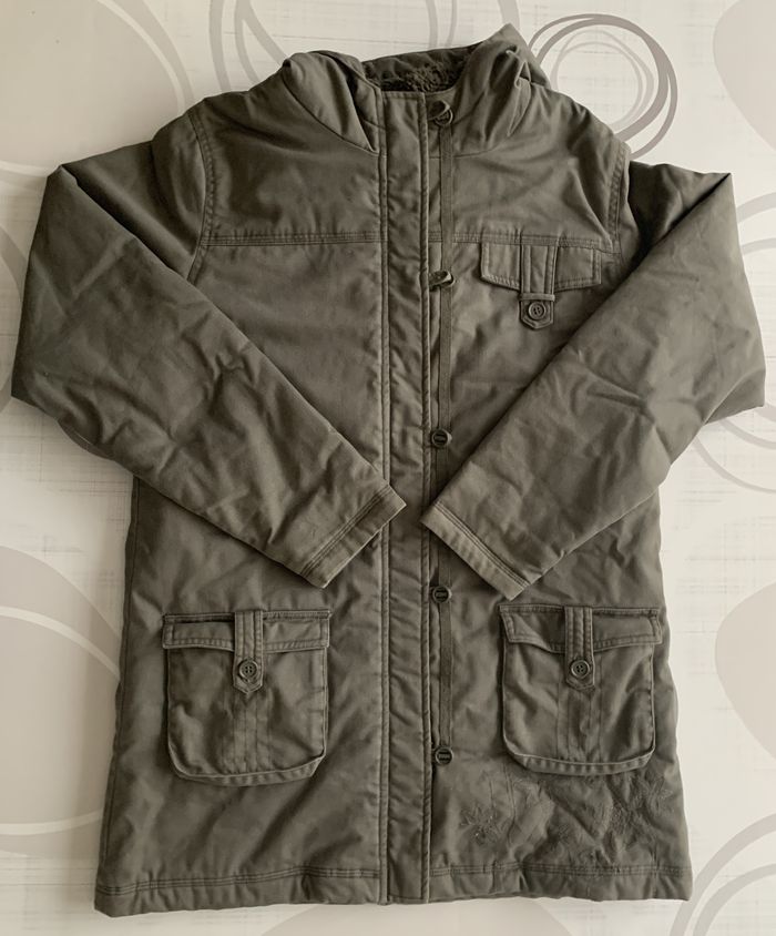 Manteau vert - Taille : 14 ans - Marque : Domyos (qualité et résistance) - Très peu porté, comme neuf - Longueur : 77 cm - Largeur des épaules : 42 cm - Longueur des manches : 64 cm - Zip et boutons fonctionnels - Très chaud et confortable, idéal pour l'hiver - Parfait état, pas d’imperfections