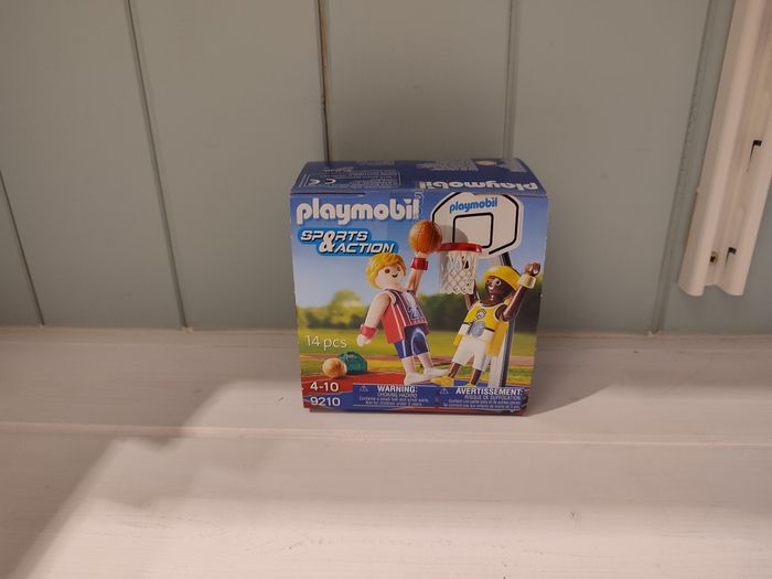 9210 Playmobil - produit dans son emballage d'origine scellé. Cet œuf contient deux basketteurs, un gros œuf à ouvrir, un panier de basket, un sac de voyage et deux ballons de basket. L'œuf peut également être utilisé comme tirelire.