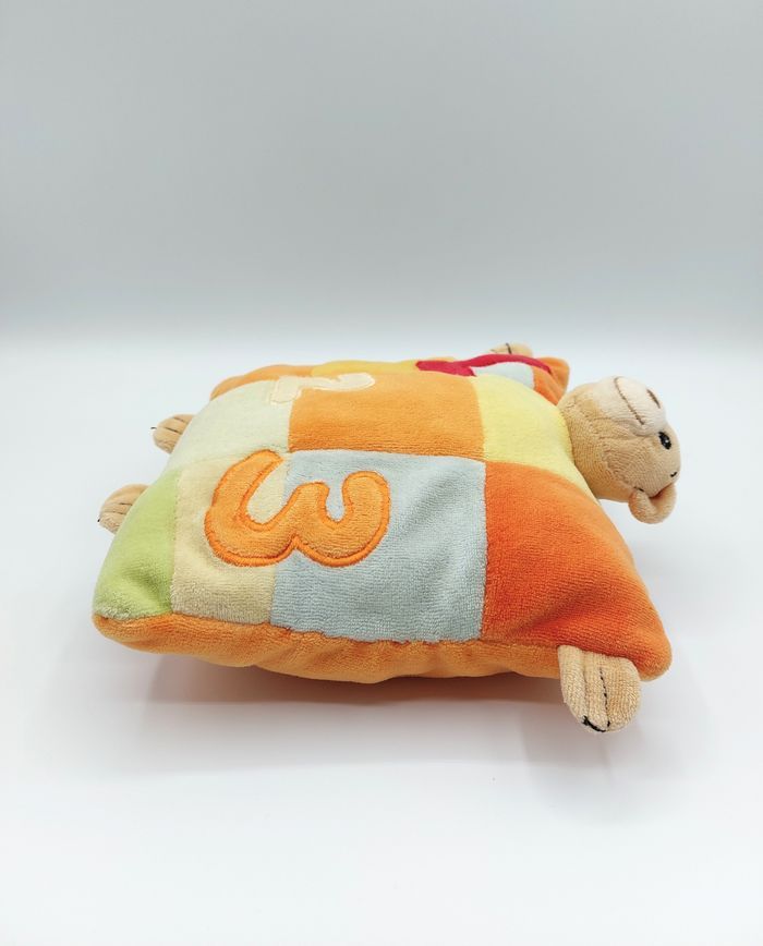Doudou carré peluche coussin ours KALOO ? 123 orange jaune beige rouge 21 cm long - photo numéro 4