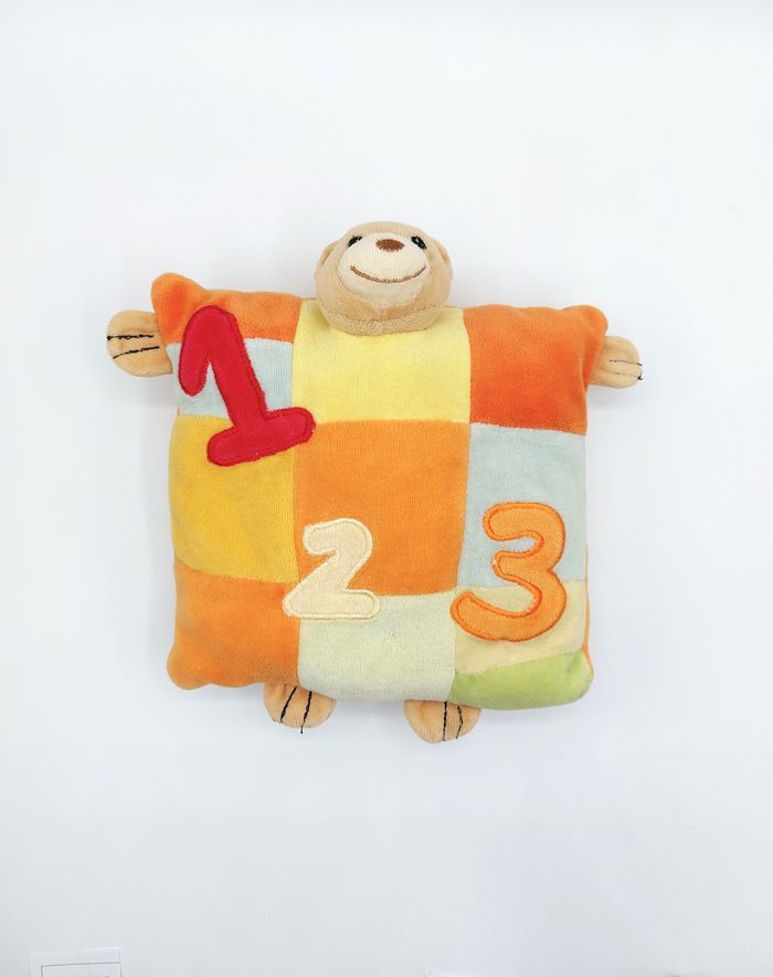 Doudou carré peluche coussin ours 123 orange jaune beige rouge - il ressemble aux modèles KALOO sans certitude car l'étiquette est coupé taille 21 cm de longueur totale Bon état, lavé - étiquette coupée Envoi rapide 👋 Vendeur professionnel – articles soigneusement sélectionnés, nettoyés et vérifiés avant expédition. A12790 #peluche #doudou #ours #kaloo #vintage