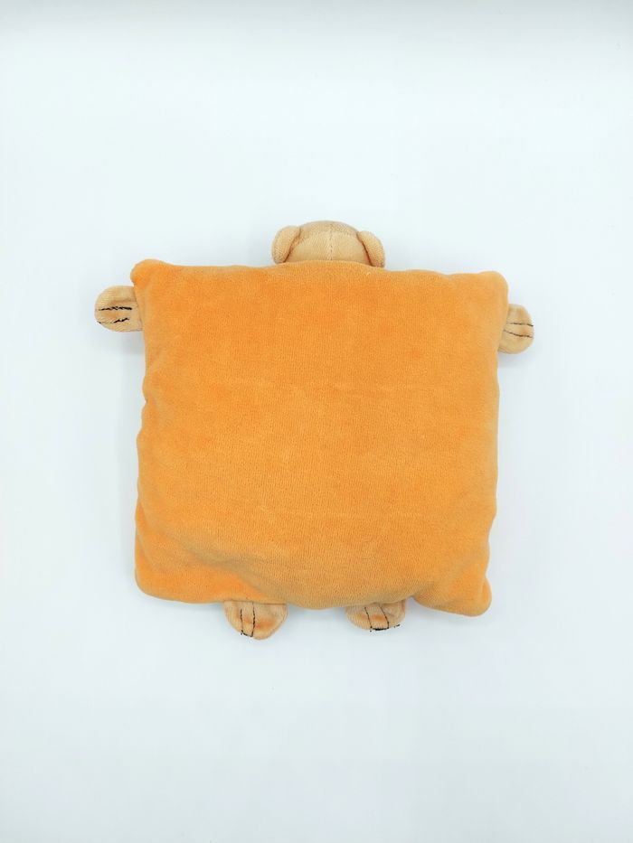 Doudou carré peluche coussin ours KALOO ? 123 orange jaune beige rouge 21 cm long - photo numéro 1