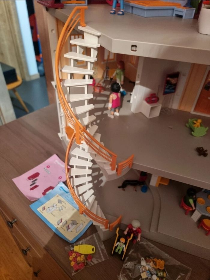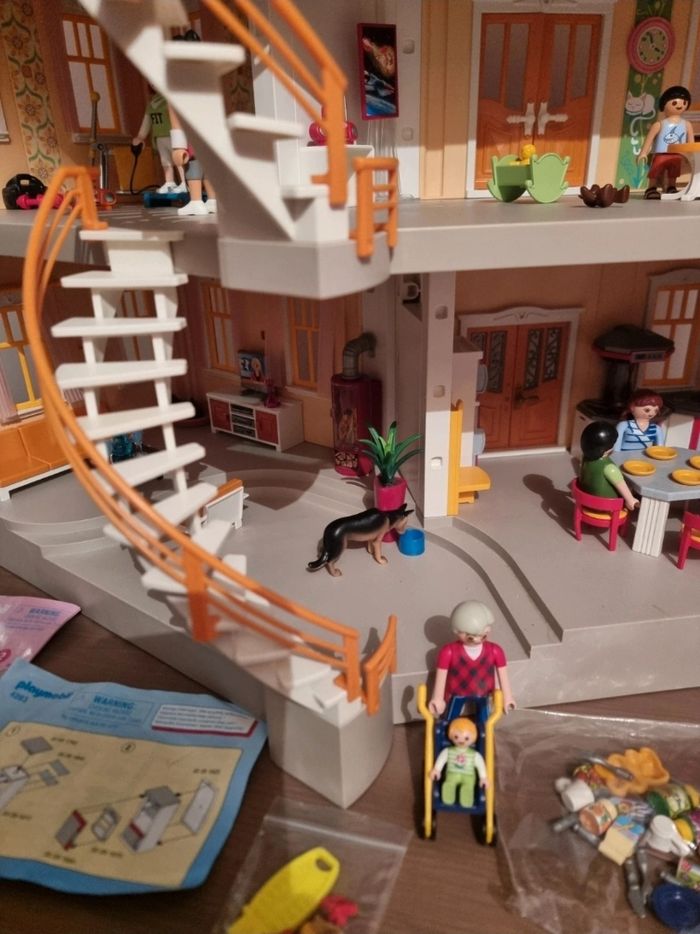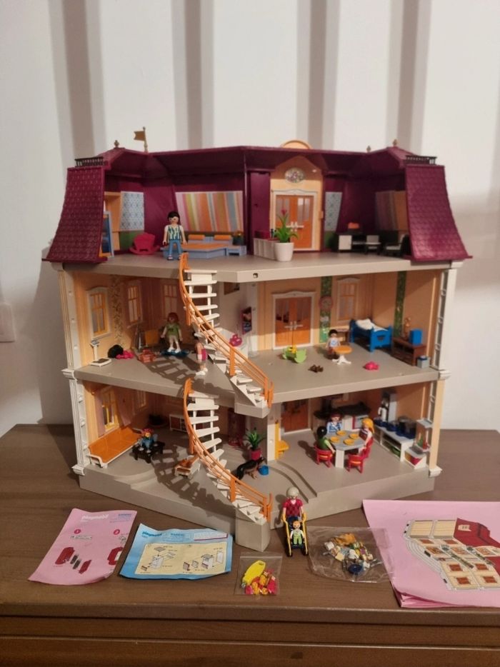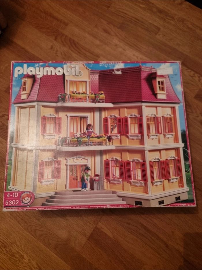 Maison playmobil 5302 avec boîte d'origine Très bon état général à noté manque 1 coté d'une poignée, quelques pièces jaunies, un petit trou sur une face, avec un autocollant ni vu ni connu 🙃 et la sonnette a un clips de pile qui est cassé mais devrait marché avec un petit bout d'aluminium ou quelque chose de conducteur pour les plus bricoleur 😊 ⚠️ ne bénéficie pas des remises de lots #dodi68_jouet