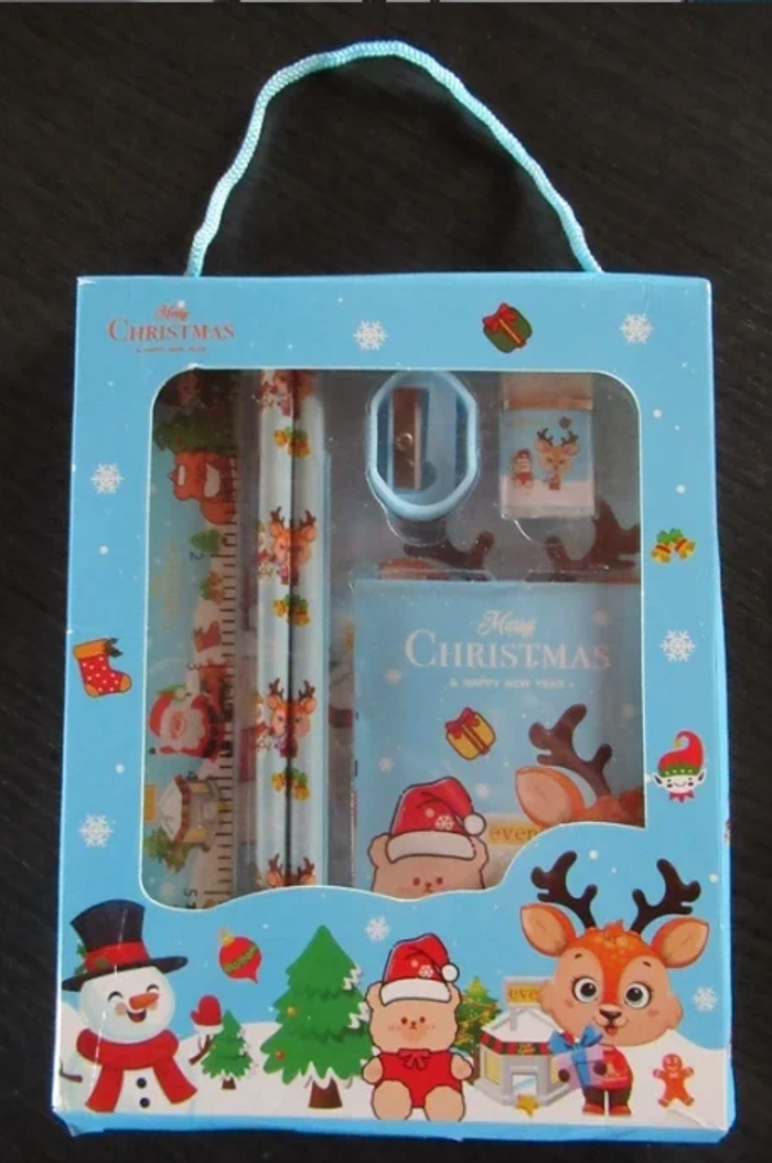 Lot Papeterie Noël (Père Noël, rennes) neuf scolaire (règle, crayons, gomme, carnet, taille crayon)