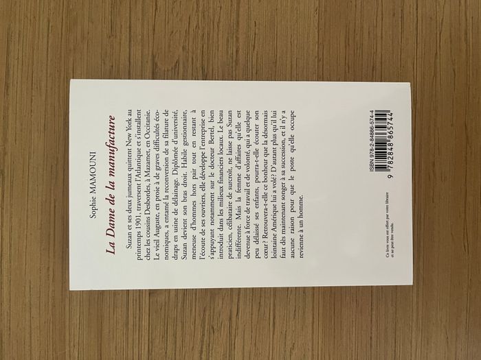 Livre de poche en très bon état. Beaucoup d'autres livres (policier - thriller - roman - histoire vraie - romance - jeunesse - cuisine - ...) à vendre également Fuyant de mauvais souvenirs, Suzan et ses deux jumeaux, Matthew et Emily, quittent New York au printemps 1901, traversent l'Atlantique et s'installent chez les cousins Des-bordes, à Mazamet, en Occitanie. Le vieil Auguste Desbordes, en proie à de graves difficultés économiques, a entamé la reconversion de sa filature de draps en usine de délainage. Diplômée d'université, Suzan devient son bras droit, le temps de se former, avant de le remplacer. Habile gestionnaire, meneuse d'hommes hors pair tout en restant à l'écoute de ses ouvriers, elle développe l'entreprise en s'appuyant notamment sur le docteur Bertel, bien introduit dans les milieux financiers au plan local. Bel homme, célibataire de surcroît, le praticien ne laisse pas Suzan indifférente. Mais la femme d'affaires qu'elle est devenue à force de travail et de volonté, et qui a quelque peu délaissé ses enfants, trouvera-t-elle le temps d'écouter son coeur afin de retrouver ce bonheur que la désormais lointaine Amérique lui a jadis volé ? D'autant plus qu'il lui faut dès maintenant songer à sa succession, et il n'y a aucune raison pour que le poste qu'elle occupe revienne à un homme. Avec cette belle fresque écrite aussi bien à la gloire de ces femmes qui ont lutté pour faire évoluer leur condition qu'à celle du milieu ouvrier, l'auteur fait revivre les temps forts du délainage, fleuron de l'industrie locale. Elle signe ici son premier roman.