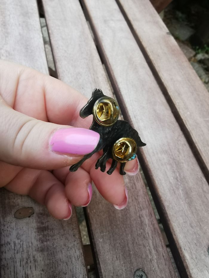 Pin's cheval et poulain vintage en métal couleur bronze. Belle broche pin's original, en bon état général, le fermoir est oxydé et une légère oxydation au nveau du collier du poulain. Dimensions : Hauteur : 3,5 cm Largeur : 4 cm Epaisseur : 1,5 cm (avec les fermoirs) Poids : 10g