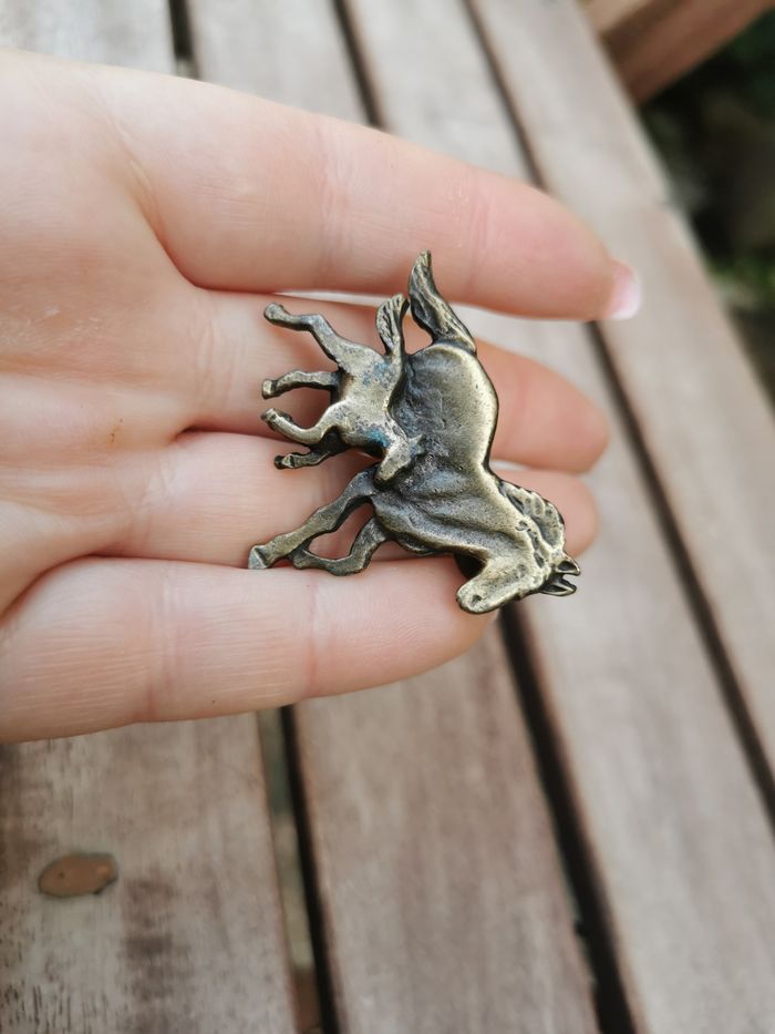 Pin's cheval et poulain vintage en métal couleur bronze - photo numéro 5
