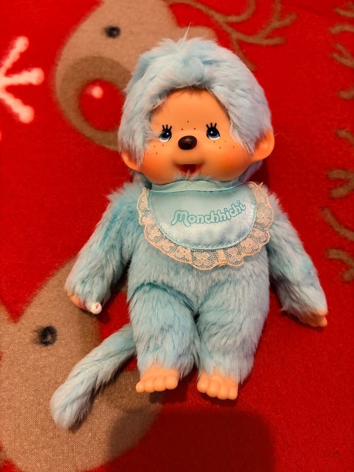 Monchhichi tone bleu ciel Nez et tutu manque un peu de peinture Sinon ras Kiki import jap