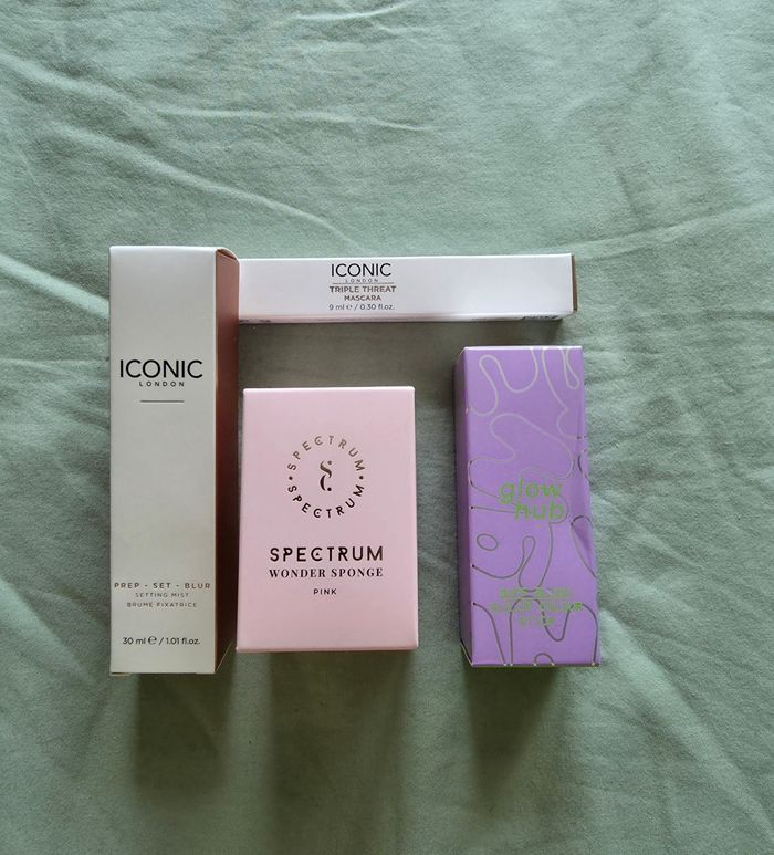 ​✨ ÉTAT : Neuf. Le mascara et l'éponge sont encore scellés dans leur emballage d'origine. La brume et le blush ont été déballés pour les photos mais n'ont jamais été utilisés. ​📏 TAILLE & COUPE : Lot de 4 produits de marques professionnelles : ​1 x Mascara Iconic London - Triple Threat (Noir, 9 ml - Format vente) ​1 x Brume fixatrice Iconic London - Prep-Set-Blur (30 ml) ​1 x Blush en stick Glow Hub - Buff Blush (Teinte "Poppin", 5g) ​1 x Éponge à maquillage Spectrum - Wonder Sponge (Rose, sans latex) ​🌿 MATIÈRE : Cosmétiques de haute qualité, formules certifiées Vegan et Cruelty-free. L'éponge Spectrum est réputée pour sa douceur et son application sans traces. ​📦 LIVRAISON : Envoi via Mondial Relay (lockers), Shop2Shop ou Chronopost (point relais physique). ​🎁 Réductions sur les lots activées ! C'est le moment de refaire votre trousse à maquillage.