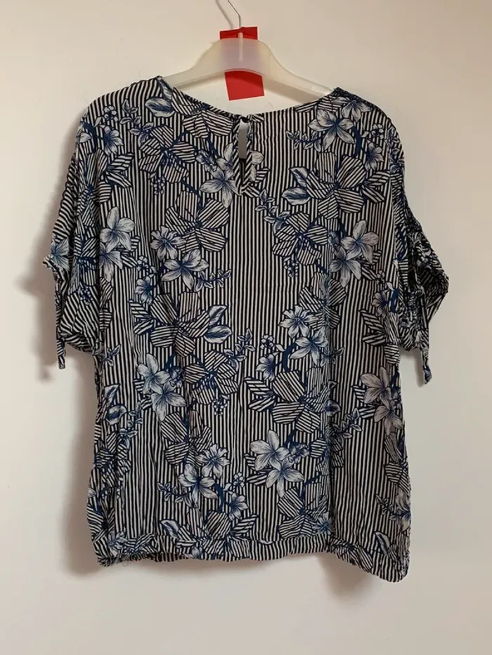 Ma petite friperie vous propose cette blouse fleuri et rayé, ouvert en haut du dos, manche courte. #article650
