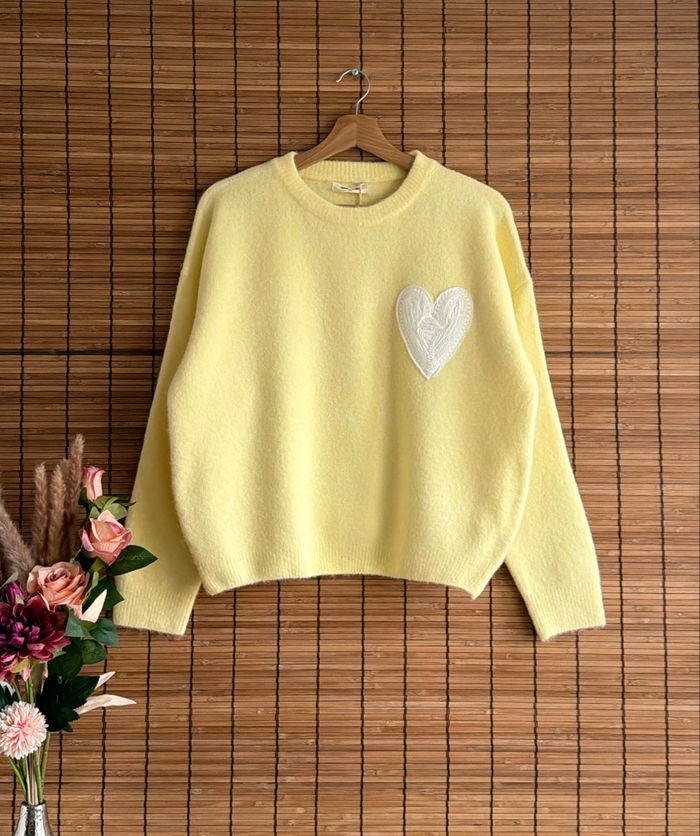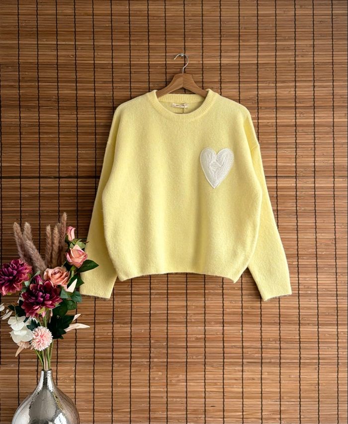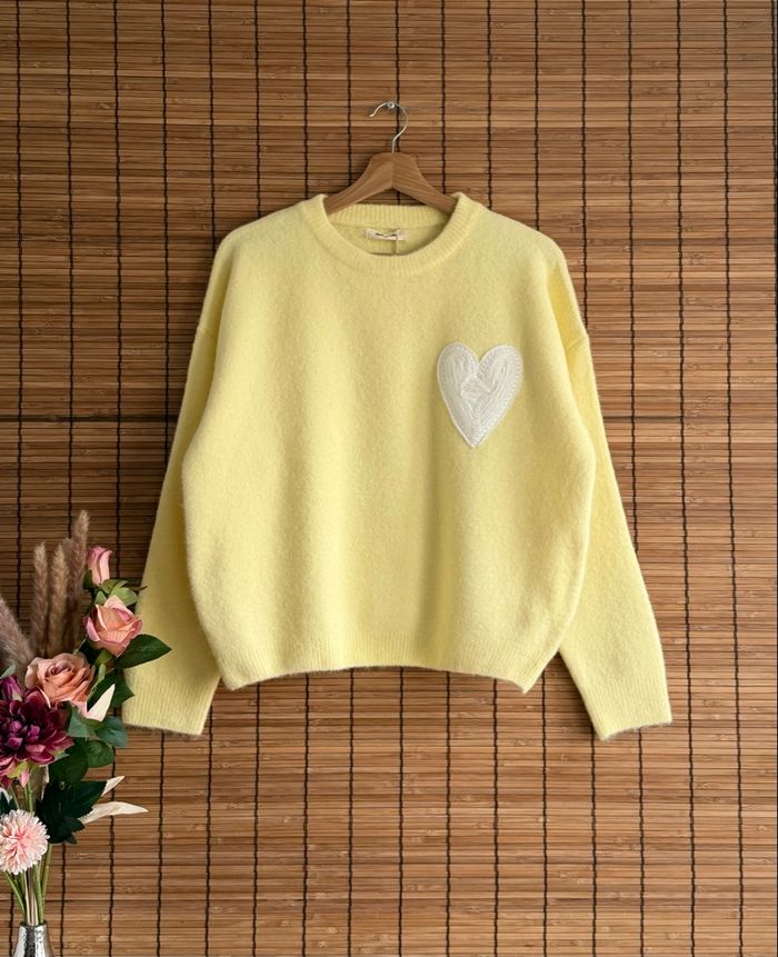 Pull  jaune  a coeur 🌺 - photo numéro 1