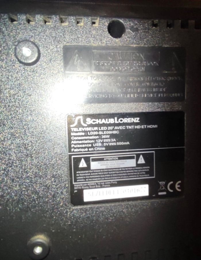 Télévision 20pouces (51cm de diagonale) Fourni avec câble d’alimentation et télécommande