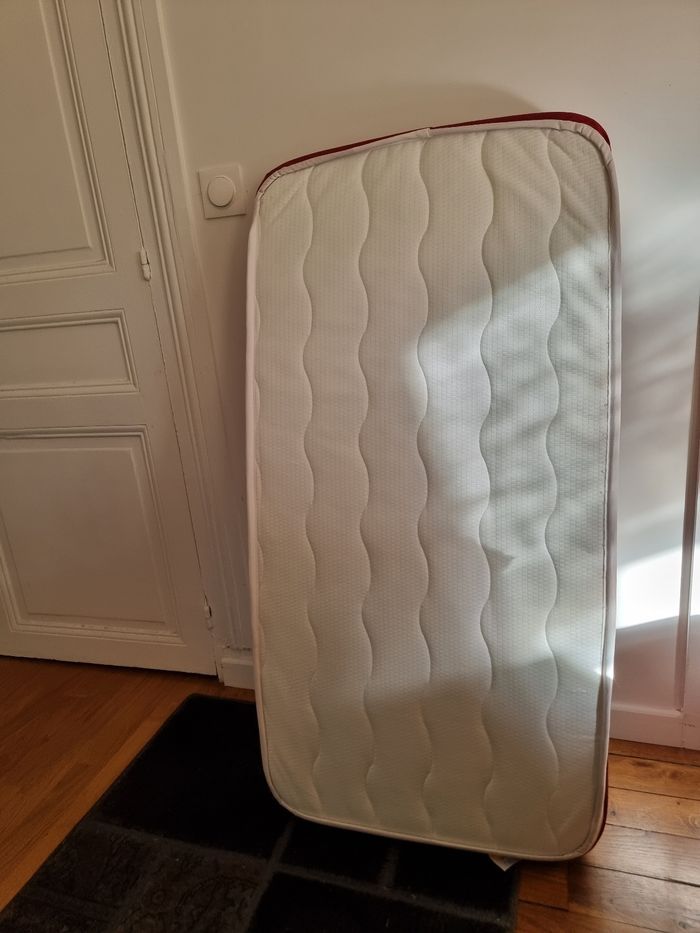 matelas neuf (été, hivers, anti bacterien) + un protège matelas et deux draps housse.