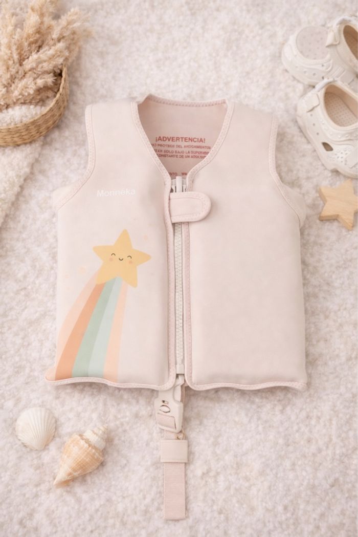 Commencez à apprendre à nager avec les gilets de flottaison Monnka! Découvrez ce gilet adorable de la collection Starlight, équipé d'une sangle de sécurité à placer entre les jambes pour empêcher le gilet de remonter sur la tête lors des sauts verticaux dans l'eau ou simplement pour flotter. Il est également protégé par du néoprène pour éviter les frottements entre les jambes. Nouveauté été 2025 : la flottabilité a été améliorée grâce à une poche contenant une mousse PVC haute flottabilité sur le devant supérieur, assurant un soutien supplémentaire dans toutes les tailles. Ce gilet comprend 8 compartiments, chacun contenant 3 éléments de flottabilité.
