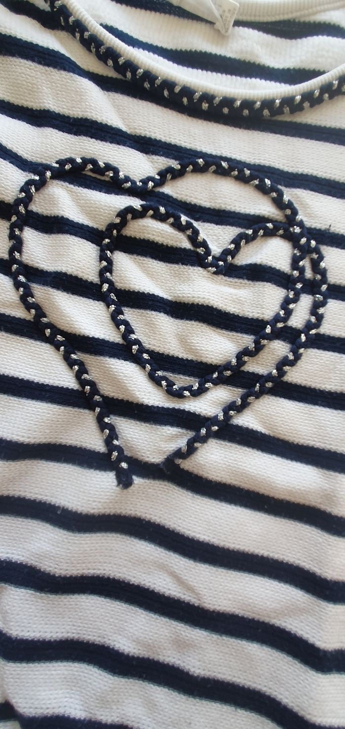 Pull Orchestra Taille 8 ans Rayé bleu marine et blanc, avec motif coeur Idéal pour le printemps Très bon état