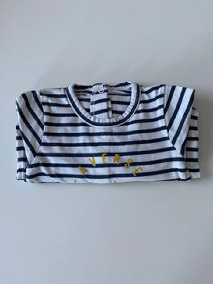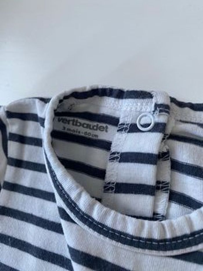 Taille : 3 mois Mesure : 60 cm Marque : vertbaudet Colori : Blanc et bleu marine Défaut : Aucun
