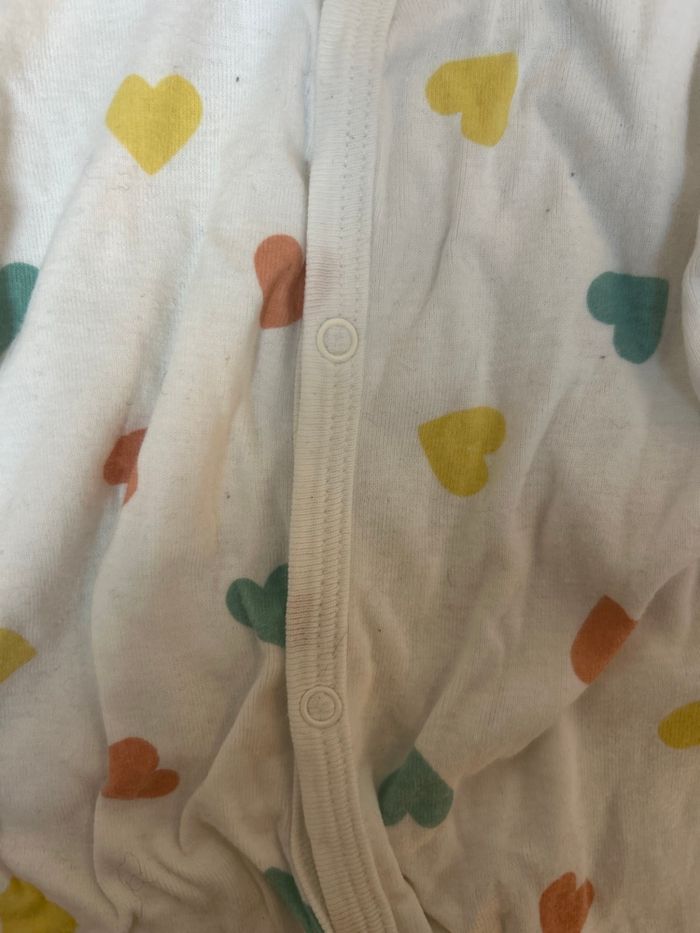 Pyjama, cœur avec deux légère taches que vous pouvez voir en photo. Sinon très bon état.
